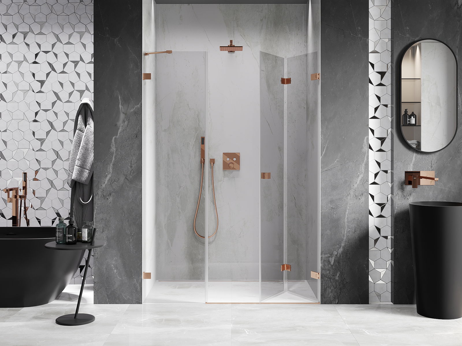 Mexen Lunar-F portes de douche pliantes droites 115 cm, transparentes, cuivre brossé - 836S-115-050-65-00-P
