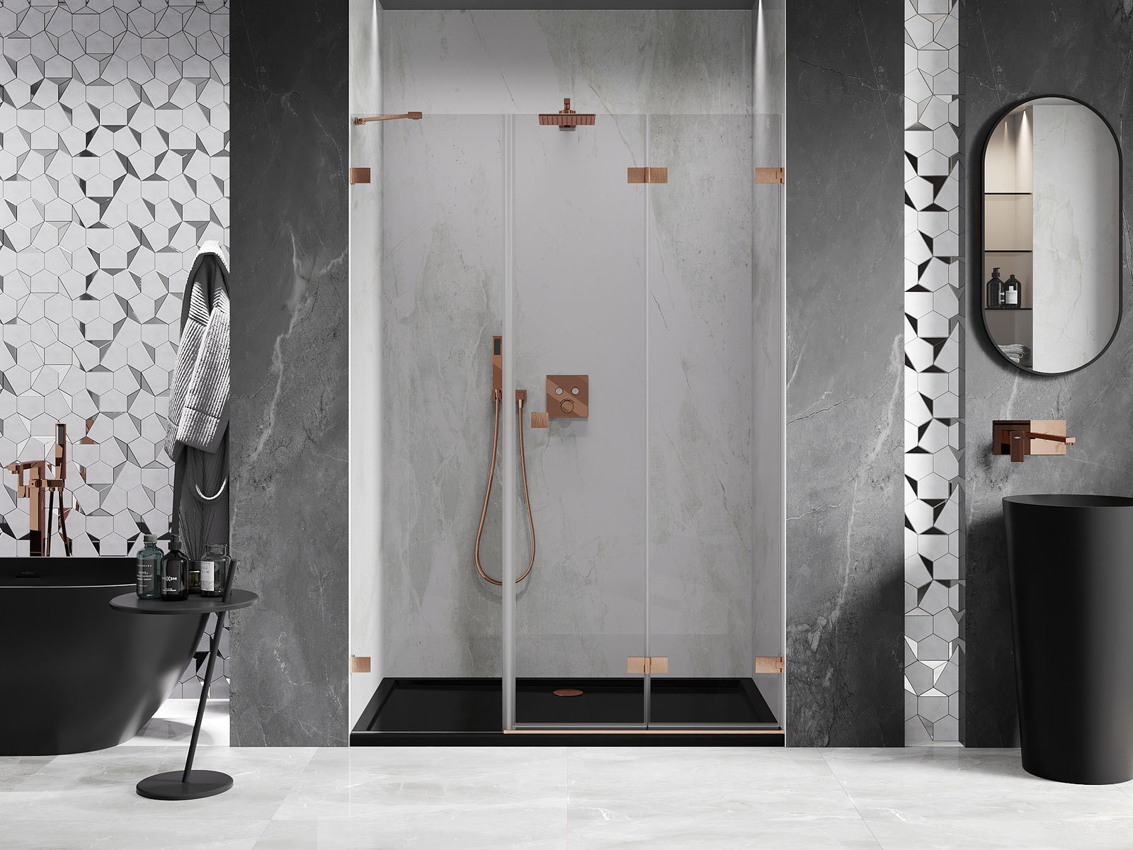 Mexen Lunar-F porte de douche pliantes droites 150 cm, transparent, cuivre brossé - 836S-150-050-65-00-P