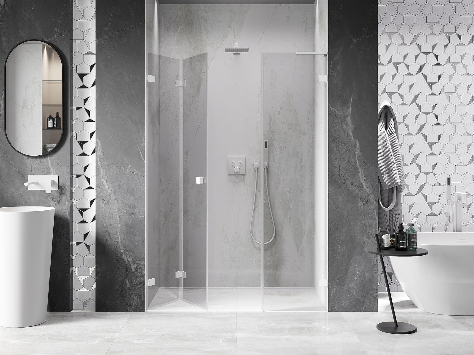 Mexen Lunar-F L portes de douche pliantes gauche 145 cm, transparentes, blanches - 836SL-145-050-20-00-L