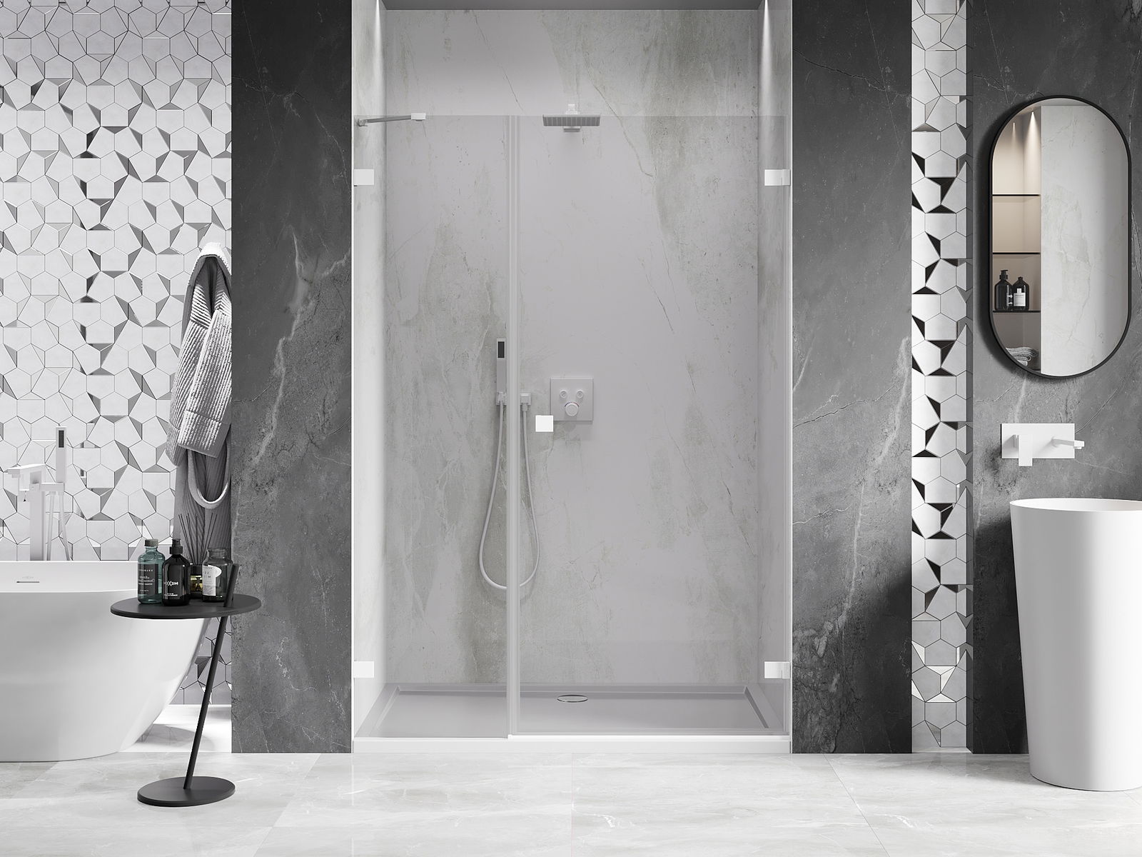 Mexen Lunar-B porte de douche battante droite 150 cm, transparent, blanc - 832S-150-050-20-00-P