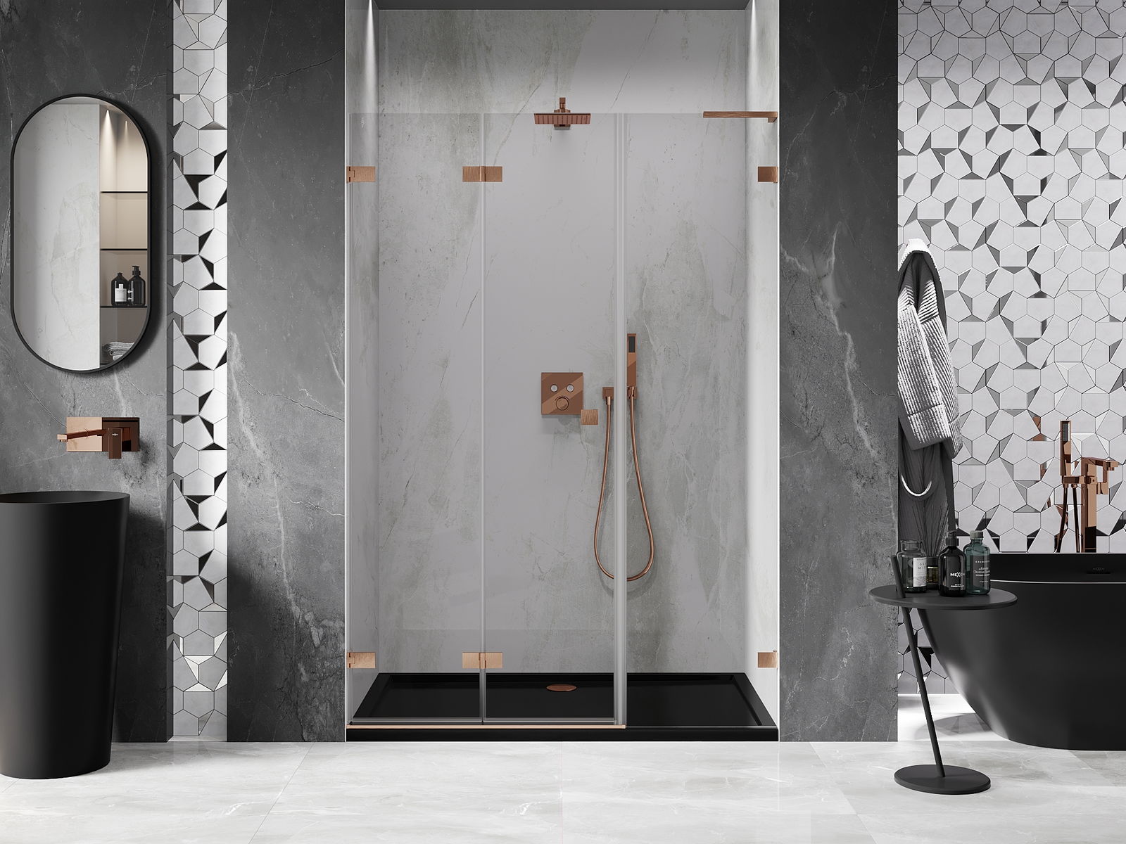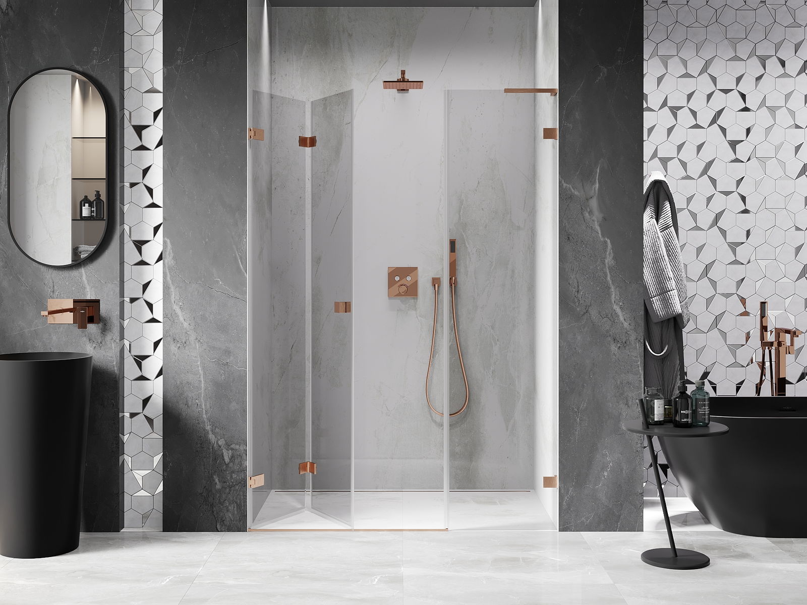 Mexen Lunar-F L porte de douche pliable gauche 120 cm, transparent, cuivre brossé - 836SL-120-050-65-00-L