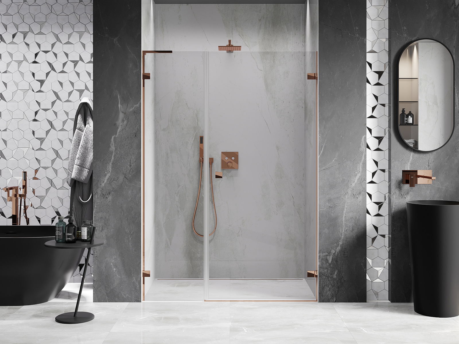 Mexen Lunar-B L porte de douche pivotante droite 120 cm, transparent, or rose - 832SL-120-050-60-00-P