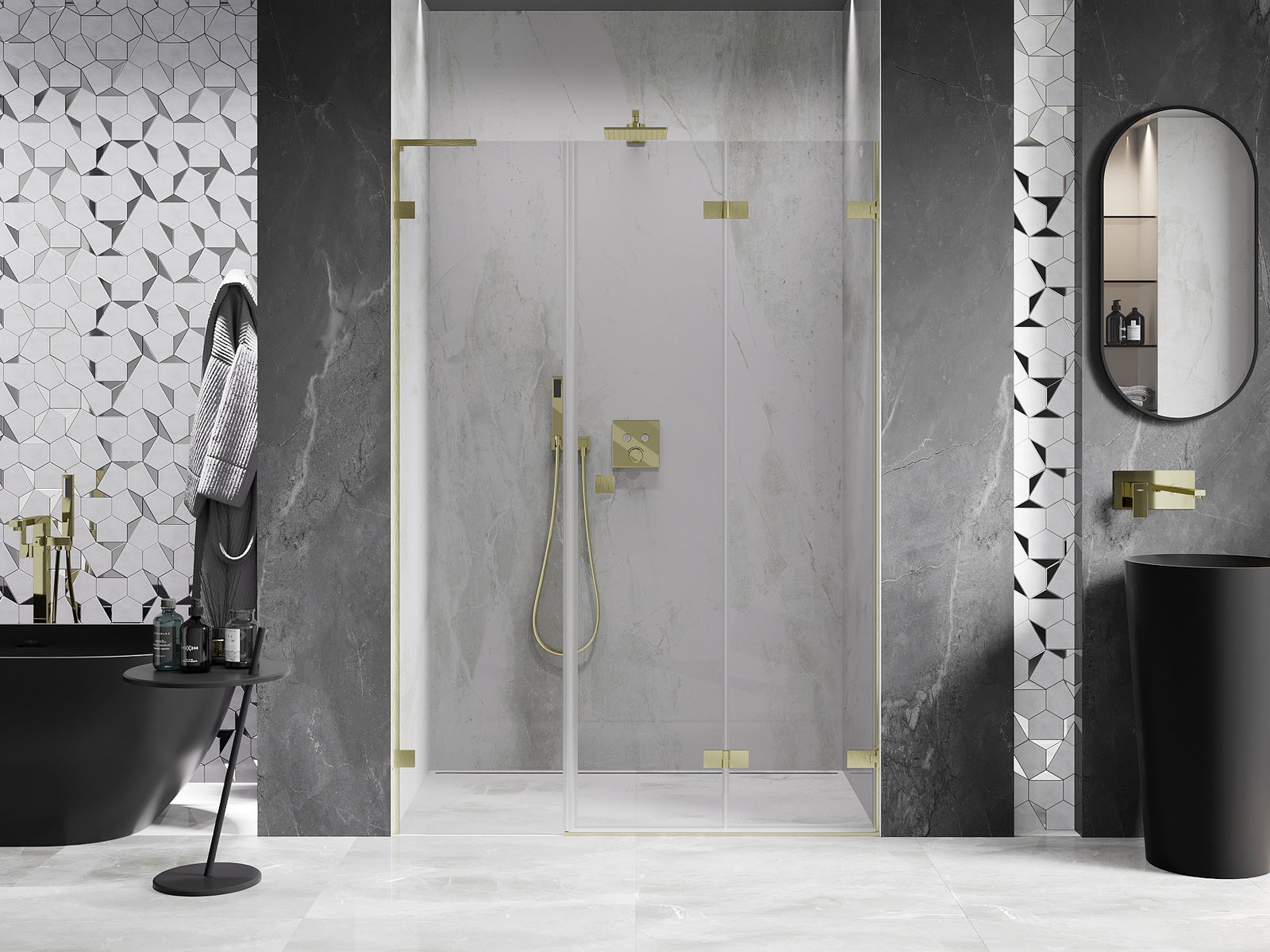 Les pinces et les charnières sont fabriquées en laiton très durable et forment en plus une surface de verre affleurante. C'est un excellent choix qui allie élégance, durabilité et design moderne. Grâce à ces solutions, la douche gagne en esthétique, tout en facilitant le maintien de la propreté.