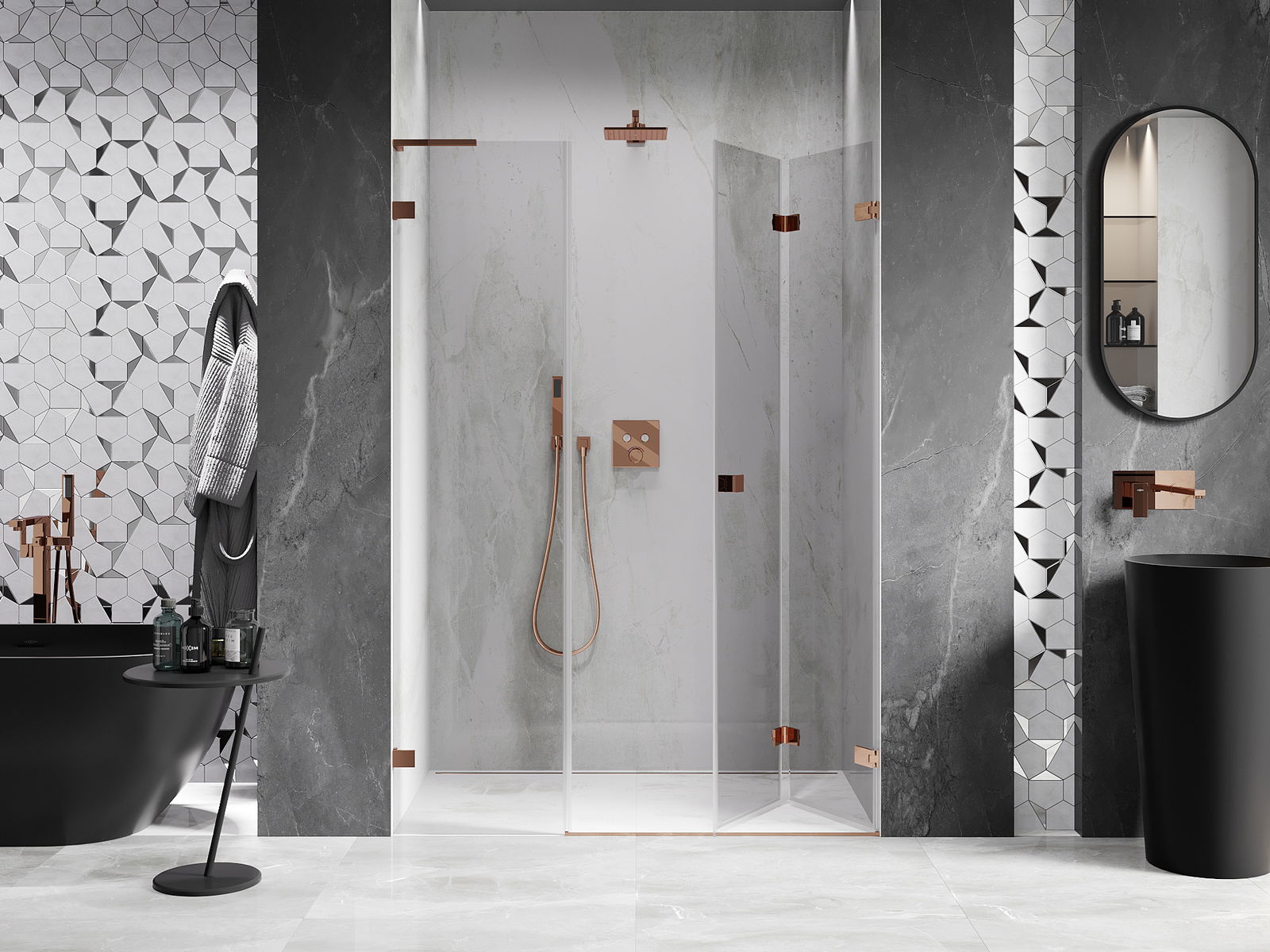 Mexen Lunar-F L porte de douche pliables droite 140 cm, transparent, or rose - 836SL-140-050-60-00-P