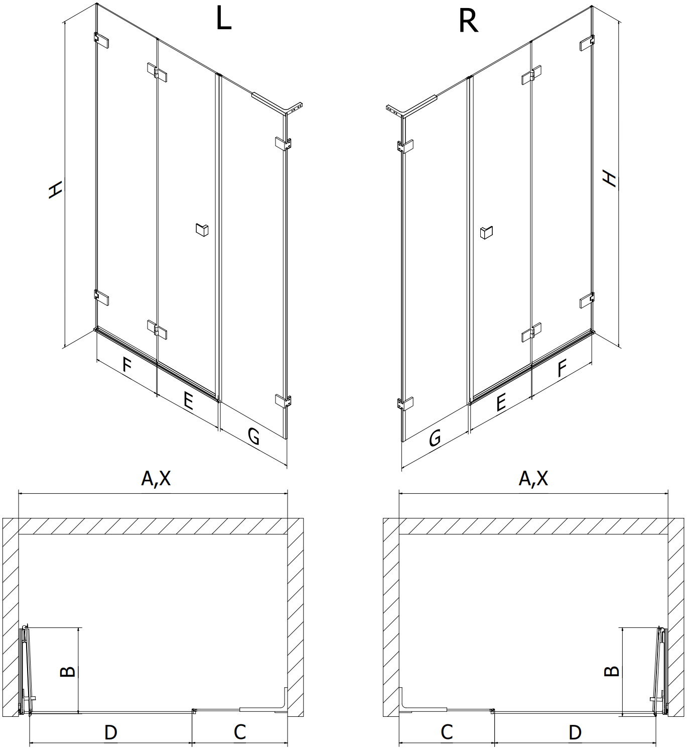 La possibilité de plier les portes, aussi bien vers l'extérieur que vers l'intérieur, permet de gagner plus d'espace lorsque la douche n'est pas utilisée. C'est une solution idéale pour les petites salles de bains, maximisant l'utilisation de l'espace disponible.
