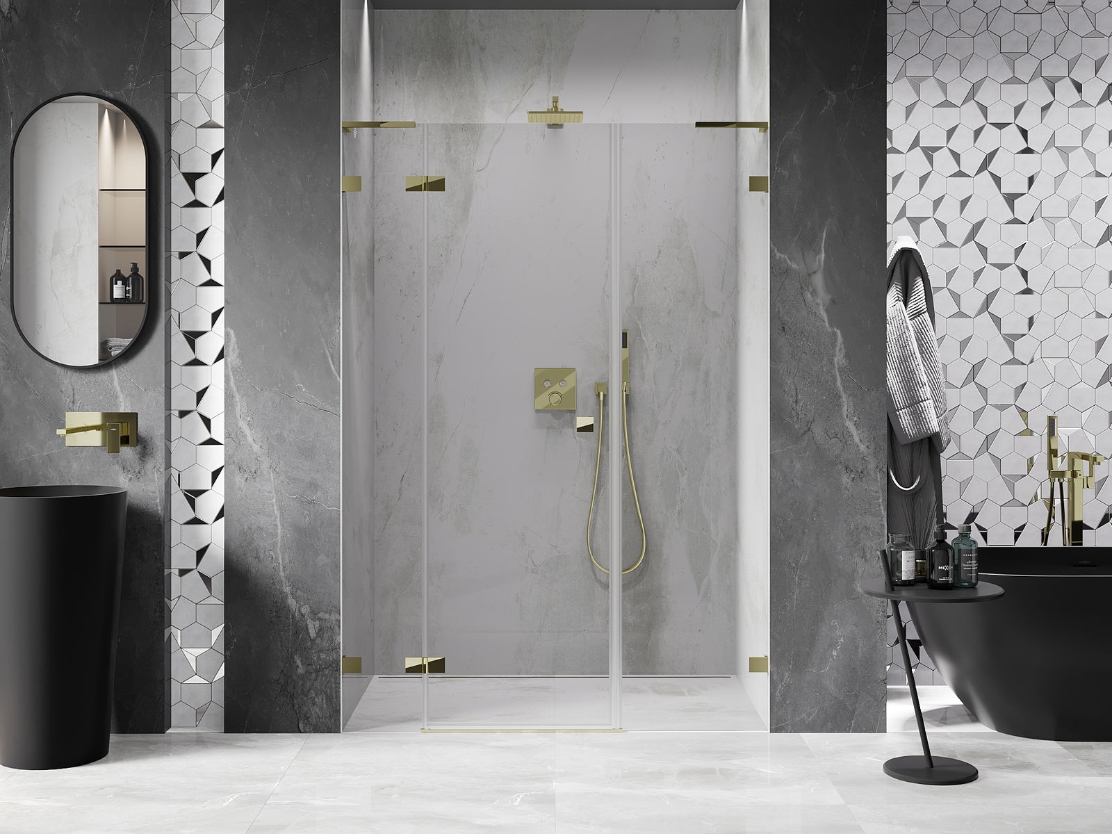 Mexen Lunar L porte de douche pivotante gauche 145 cm, transparent, dorée - 834SL-145-050-50-00-L