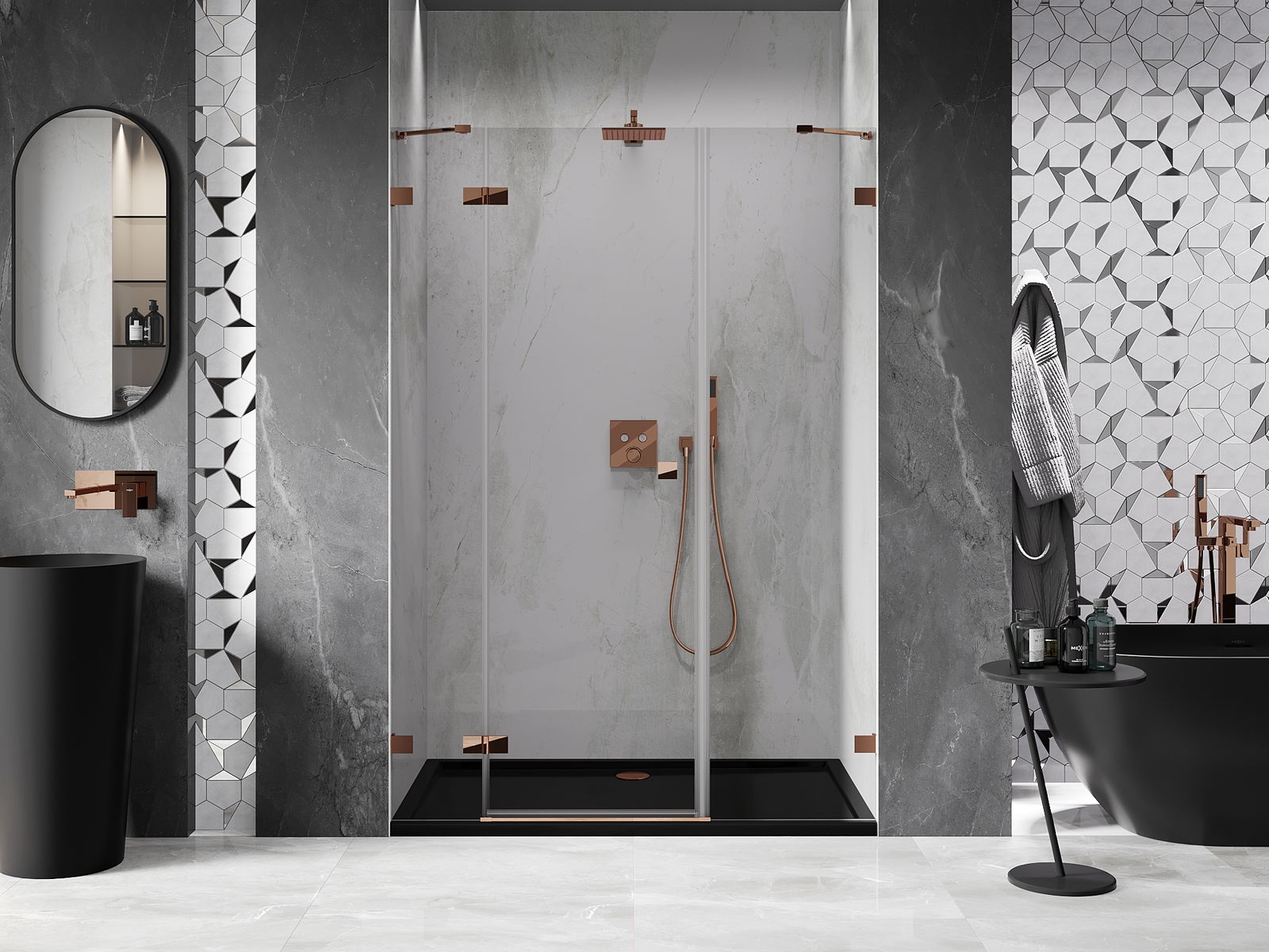 Mexen Lunar porte de douche pivotante gauche 155 cm, transparent, or rose - 834S-155-050-60-00-L