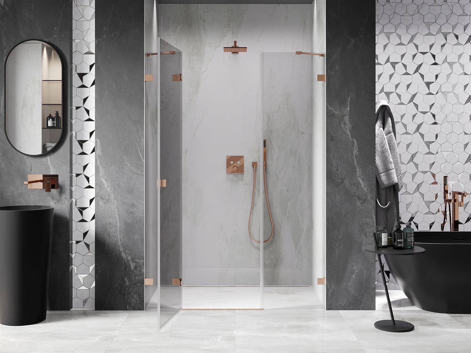 Mexen Lunar porte de douche pivotante gauche 160 cm, transparent, cuivre brossé - 834S-160-050-65-00-L