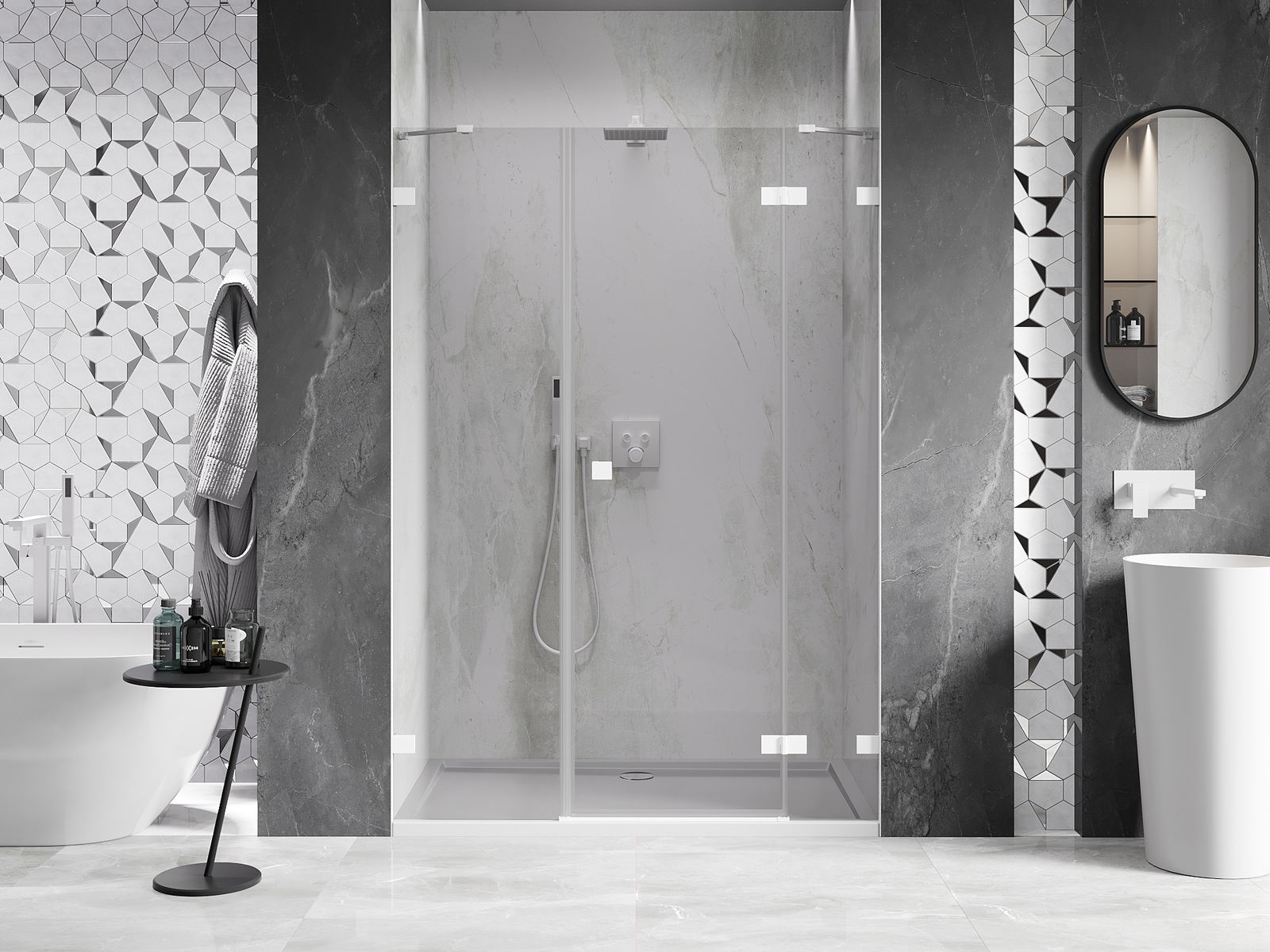 Mexen Lunar porte de douche pivotante droite 145 cm, transparent, blanc - 834S-145-050-20-00-P