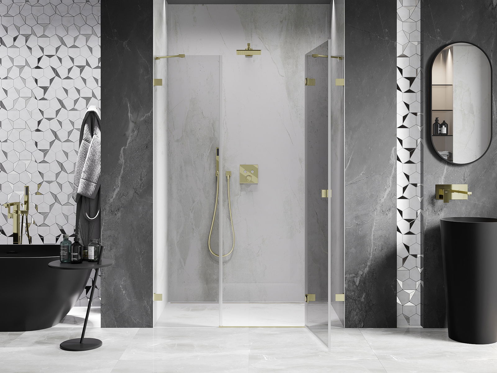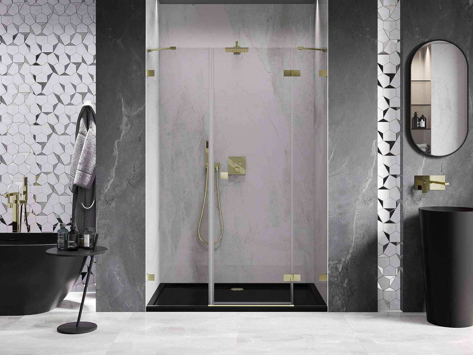 Mexen Lunar porte de douche battante droite 130 cm, transparent, or brossé - 834S-130-050-55-00-P