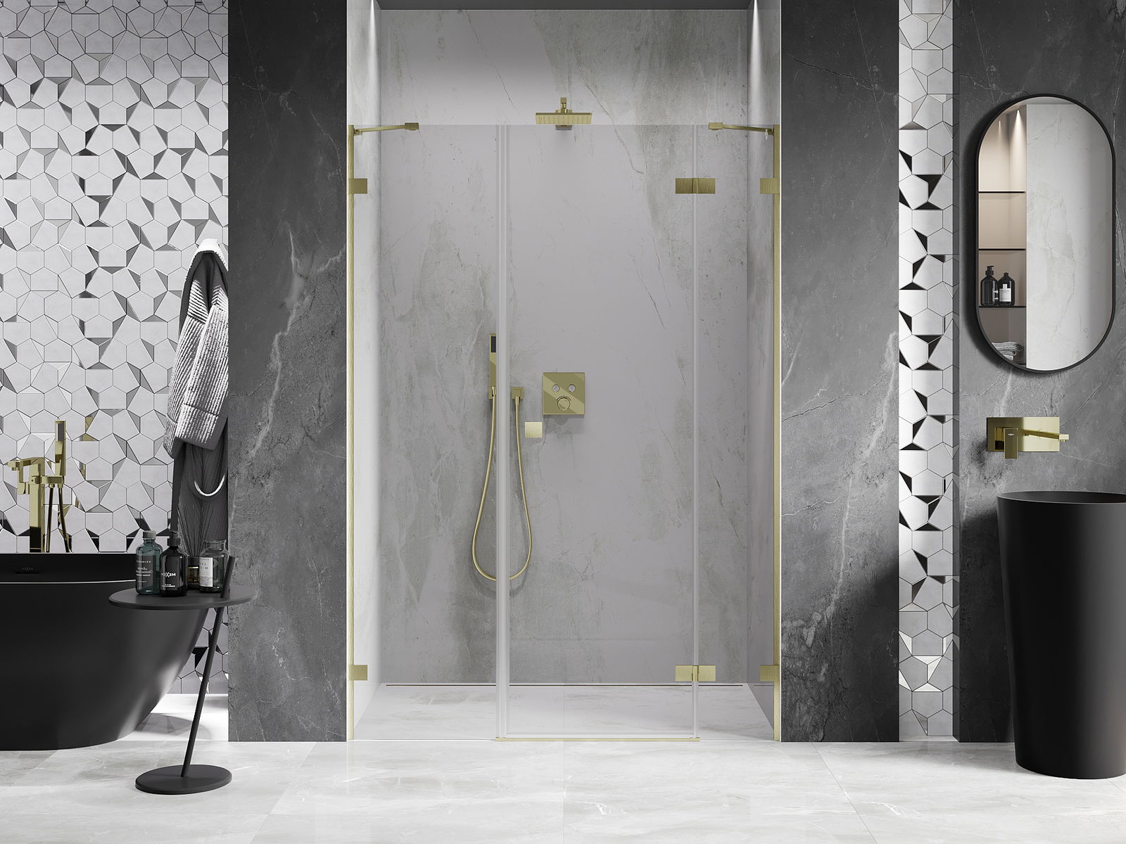 Les pinces et les charnières sont fabriquées en laiton très durable et forment en plus une surface de verre affleurante. C'est un excellent choix qui allie élégance, durabilité et design moderne. Grâce à ces solutions, la douche gagne en esthétique, tout en facilitant le maintien de la propreté.