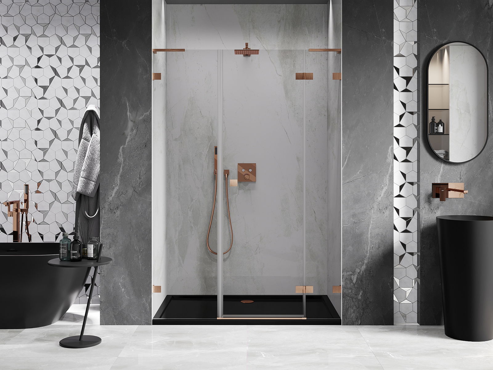 Mexen Lunar L porte de douche pivotante droite 135 cm, transparent, cuivre brossé - 834SL-135-050-65-00-P