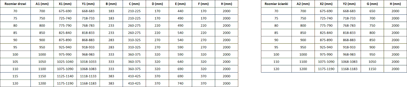 Taille: 110x100 cm (porte 110 cm, paroi 100 cm)