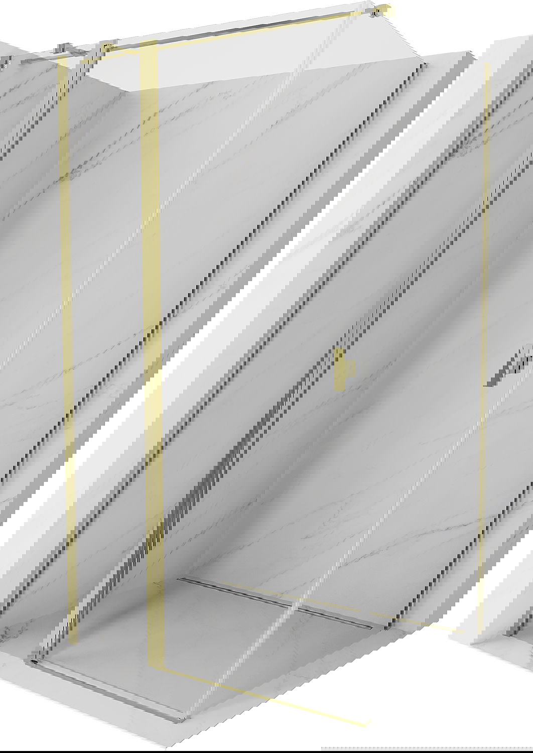La poignée pratique et confortable est fabriquée en métal durable et résistant. Sa forme à la mode, combinée à une finition assortie à la couleur des profilés, donne à l'ensemble un aspect moderne et stylé, soulignant l'esthétique de chaque salle de bain.
