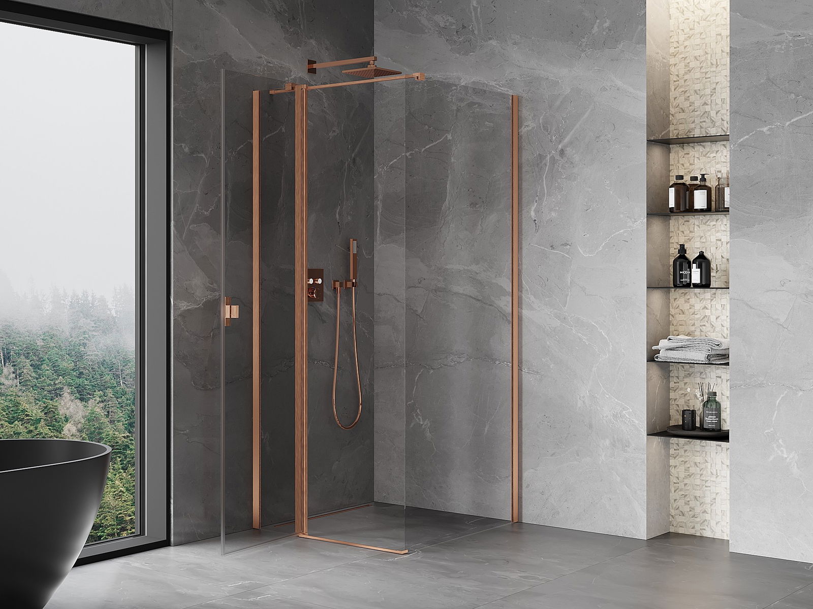 Mexen Mist T cabine de douche battante 110 x 110 cm, transparent, cuivre brossé - 8A4T-110-110-65-00