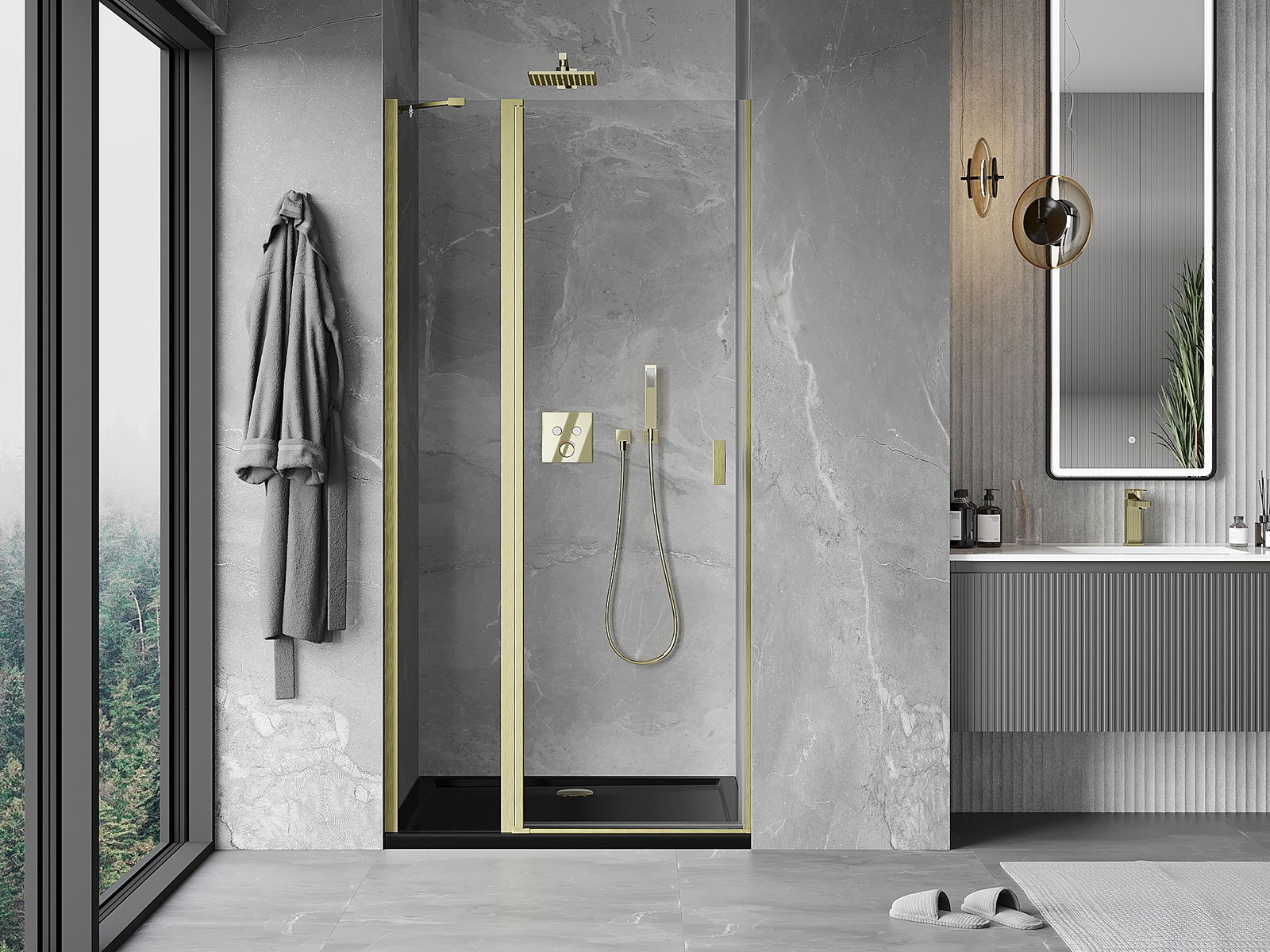 Mexen Mist porte de douche battante 80 cm, transparent, or brossé - 8A4-080-000-55-00