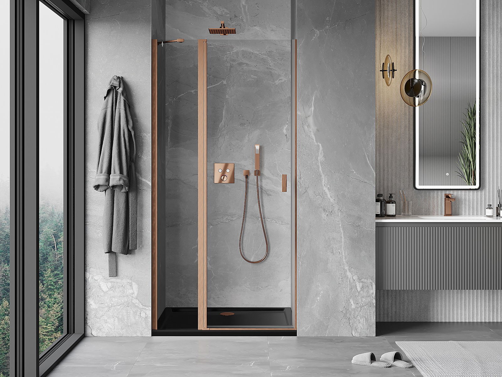 Mexen Mist porte de douche pivotante 70 cm, transparent, cuivre brossé - 8A4-070-000-65-00
