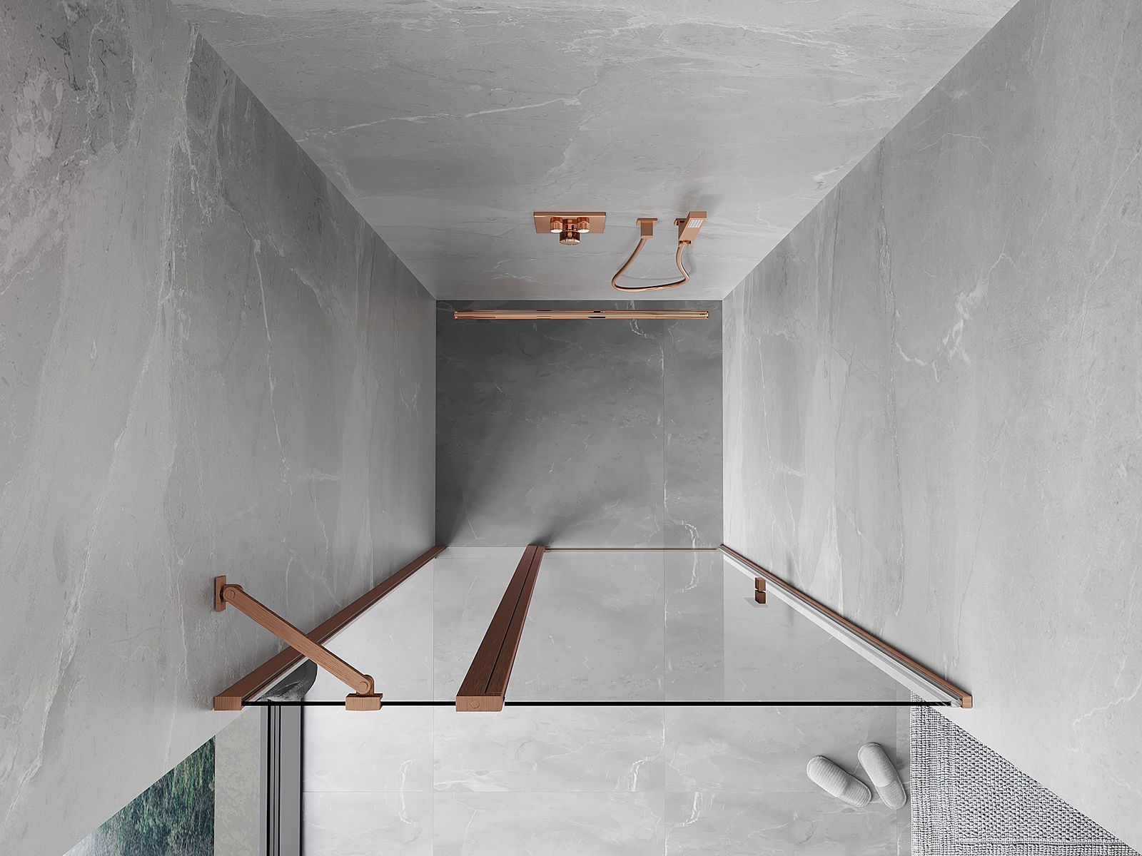 Mexen Mist porte de douche pivotante 90 cm, transparent, cuivre brossé - 8A4-090-000-65-00