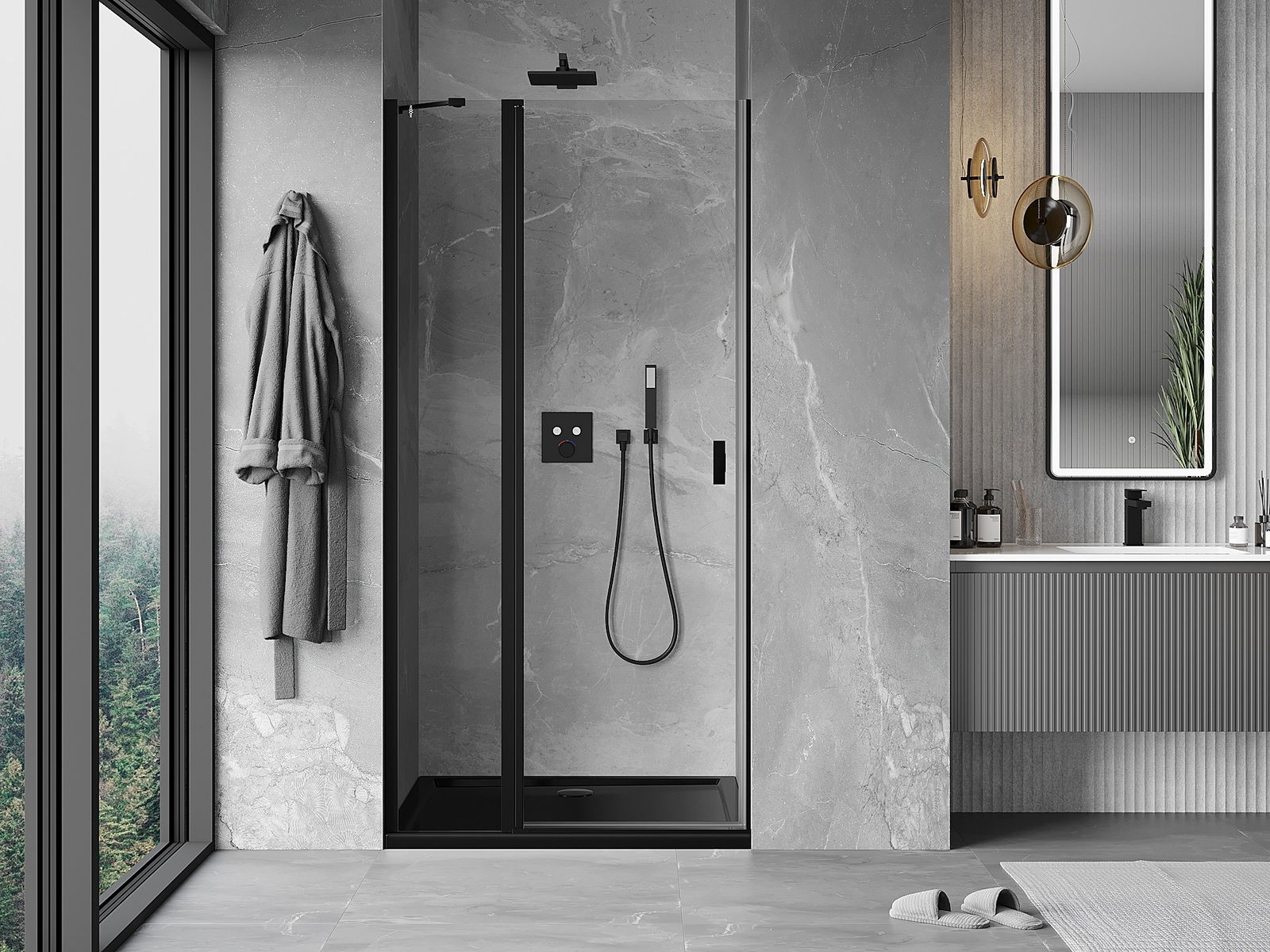 Mexen Mist porte de douche pivotante 70 cm, transparentes, noires - 8A4-070-000-70-00