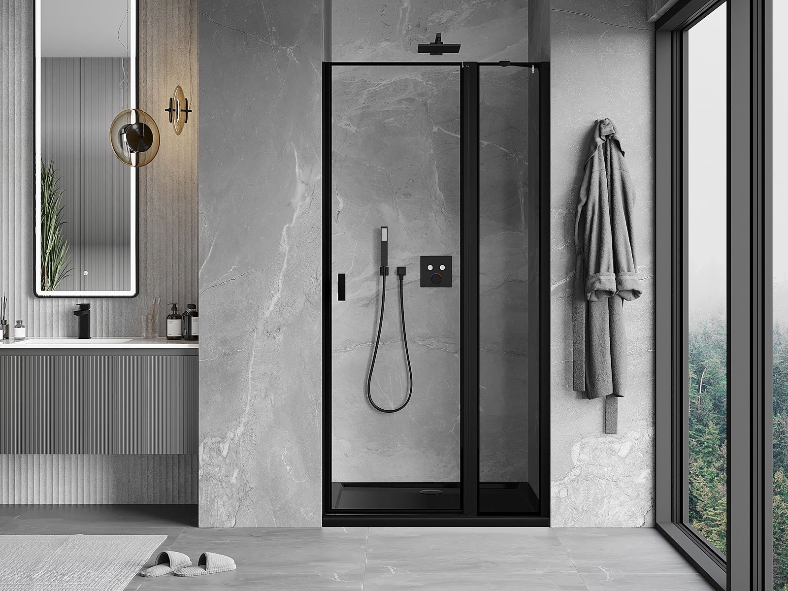Mexen Mist porte de douche battante droite 115 cm, cadre noir, noir - 8A4-115-000-70-70-P
