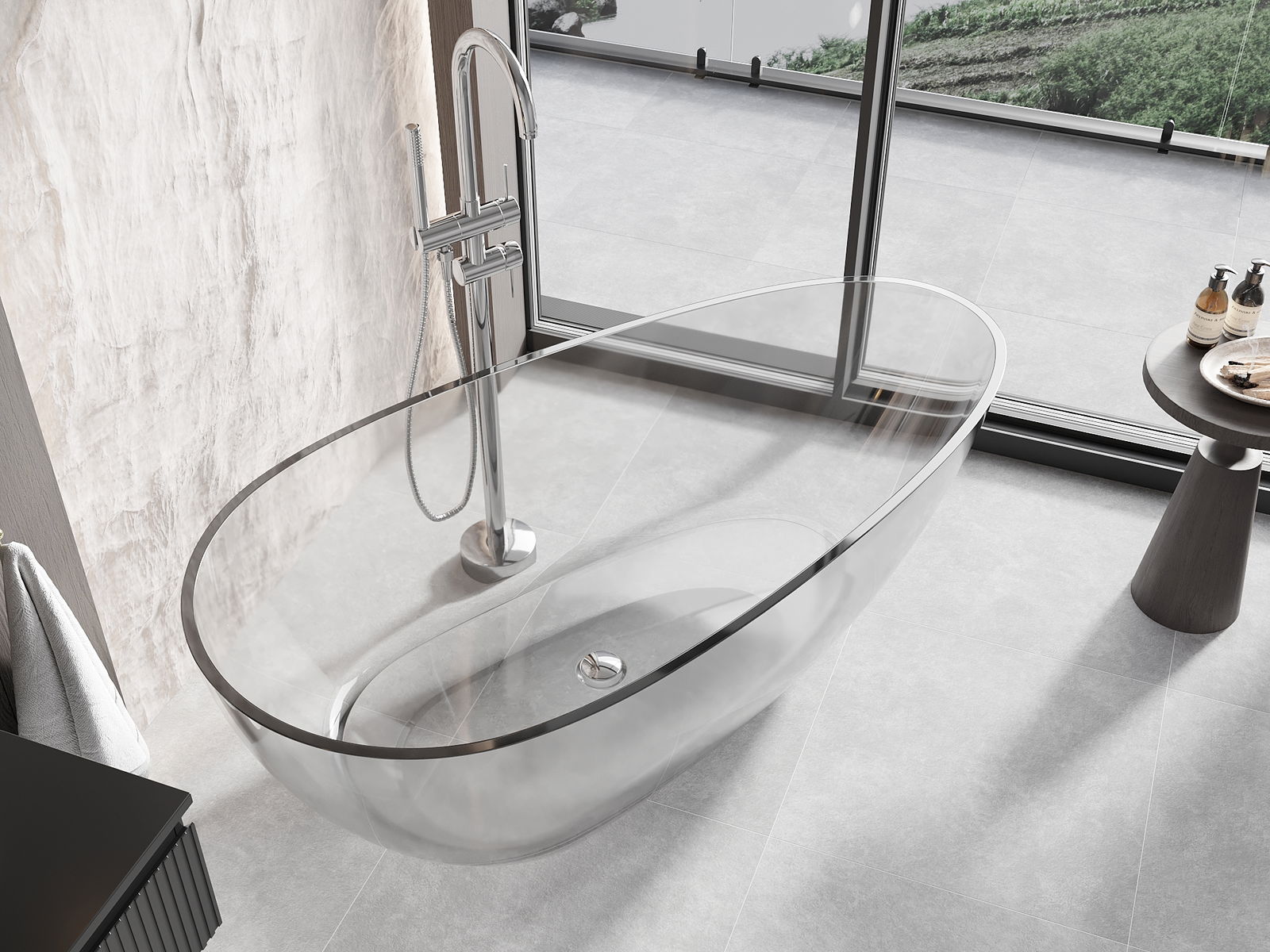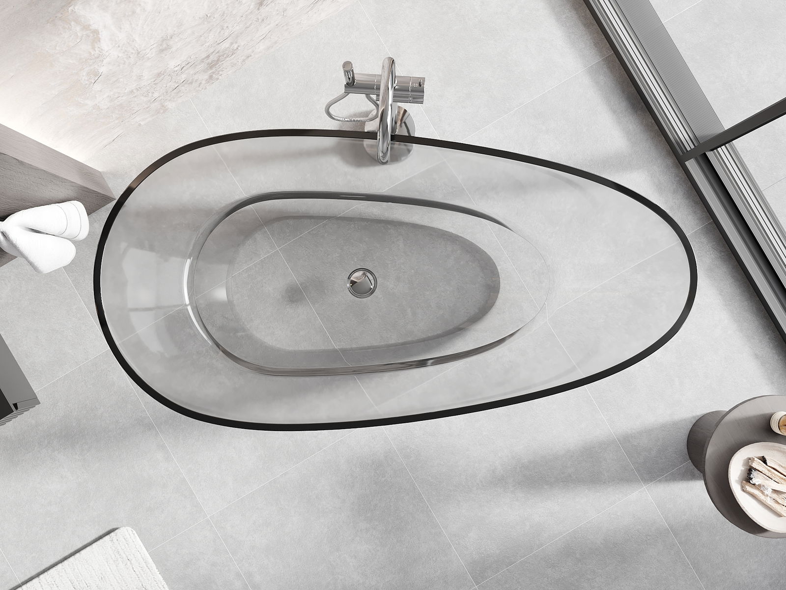 C'est un matériau moderne combinant un aspect élégant avec une haute durabilité. Il est résistant aux dommages mécaniques, facile à nettoyer et agréable au toucher. La forme transparente et le bord fin de la baignoire lui confèrent légèreté et caractère unique, créant un accent spectaculaire dans l'aménagement de la salle de bain.