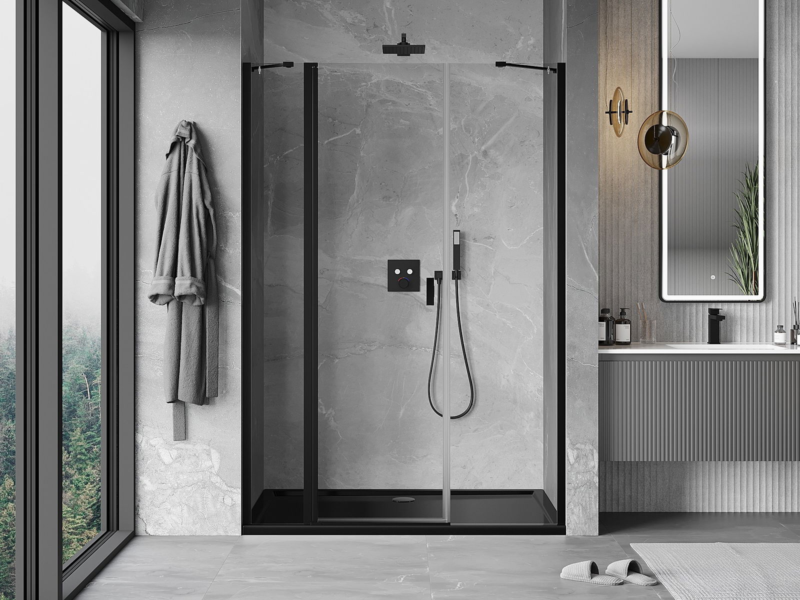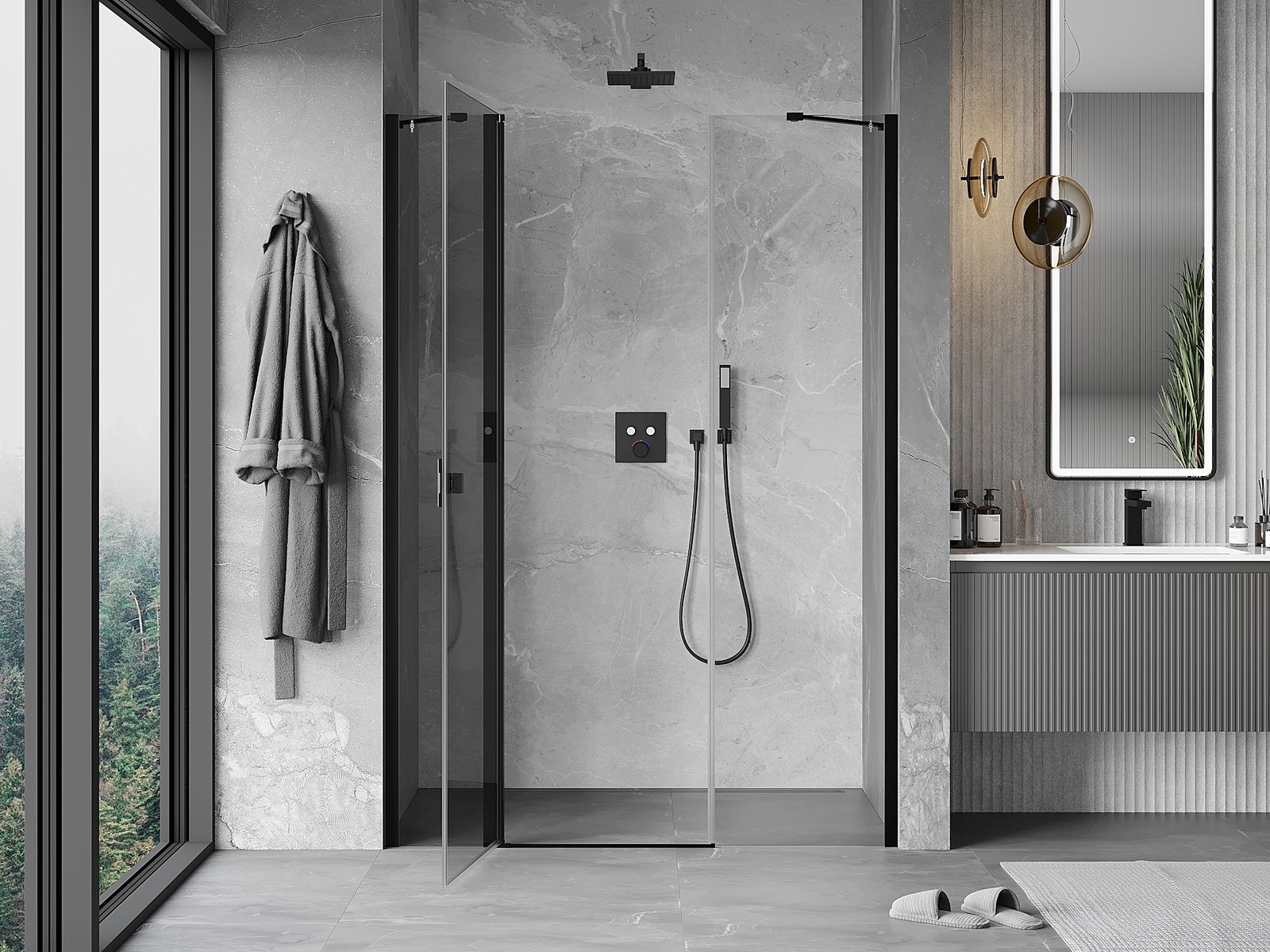 Les portes battantes permettent une liberté maximale lors de l'utilisation. Elles possèdent des charnières solides fabriquées à partir d'un matériau durable, qui ne posent pas de difficultés pour le nettoyage et permettent un accès facile à l'intérieur de la cabine.
