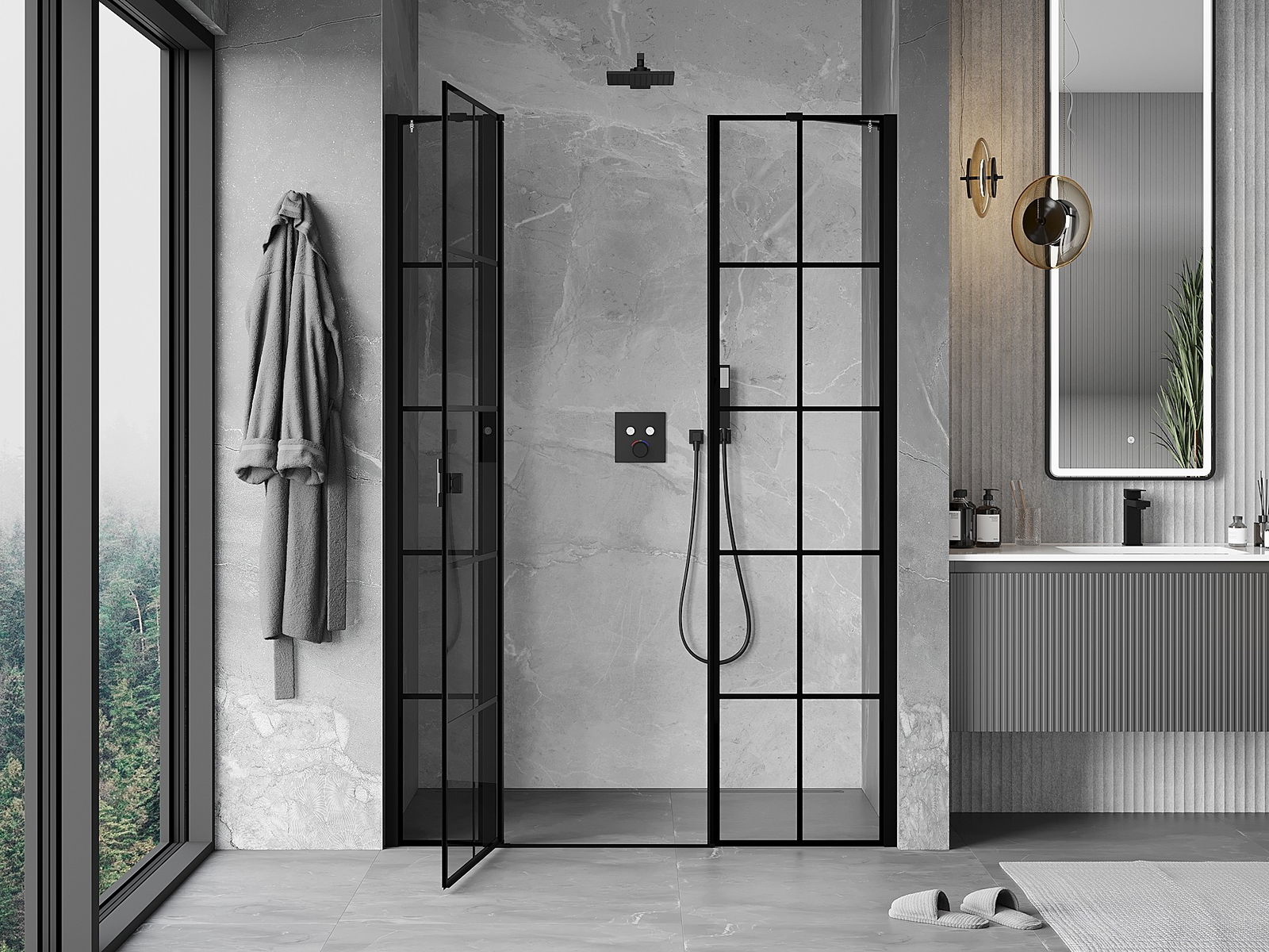 Mexen Mist porte de douche pivotante gauche 135 cm, grille noire, noir - 8A4-135-001-70-77-L