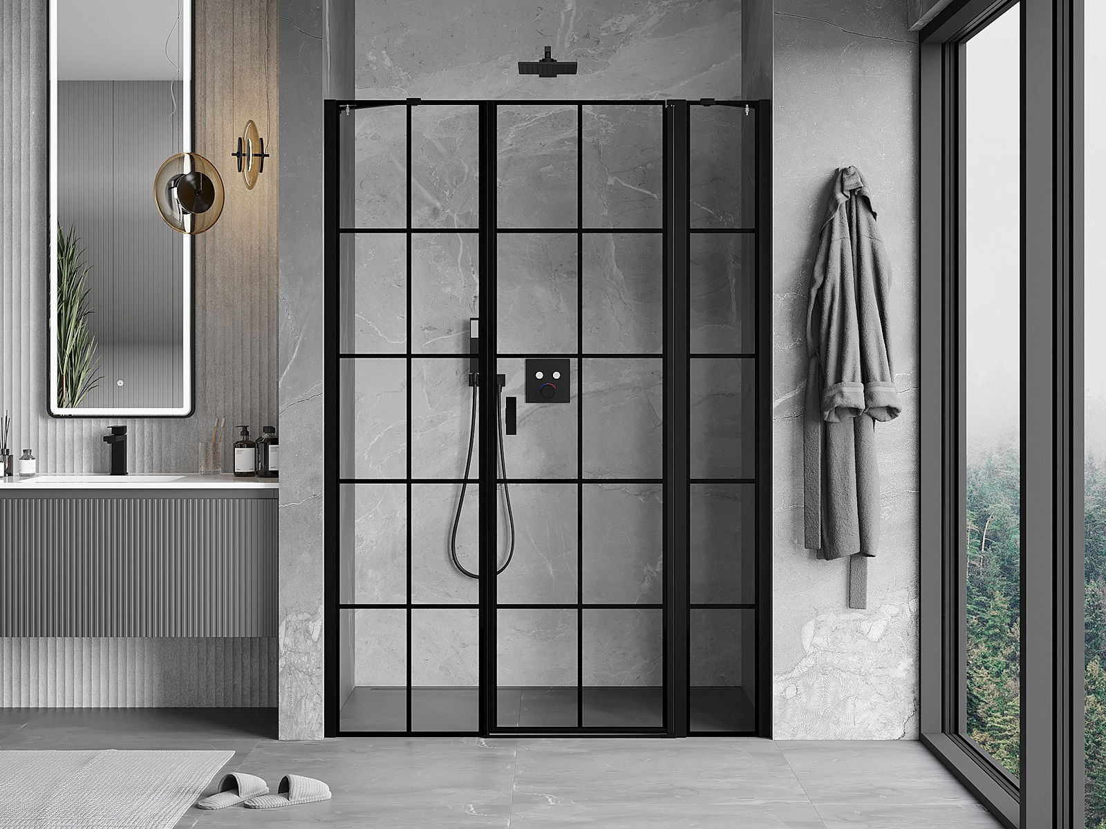 Mexen Mist porte de douche battante droite 125 cm, grille noire, noir - 8A4-125-001-70-77-P