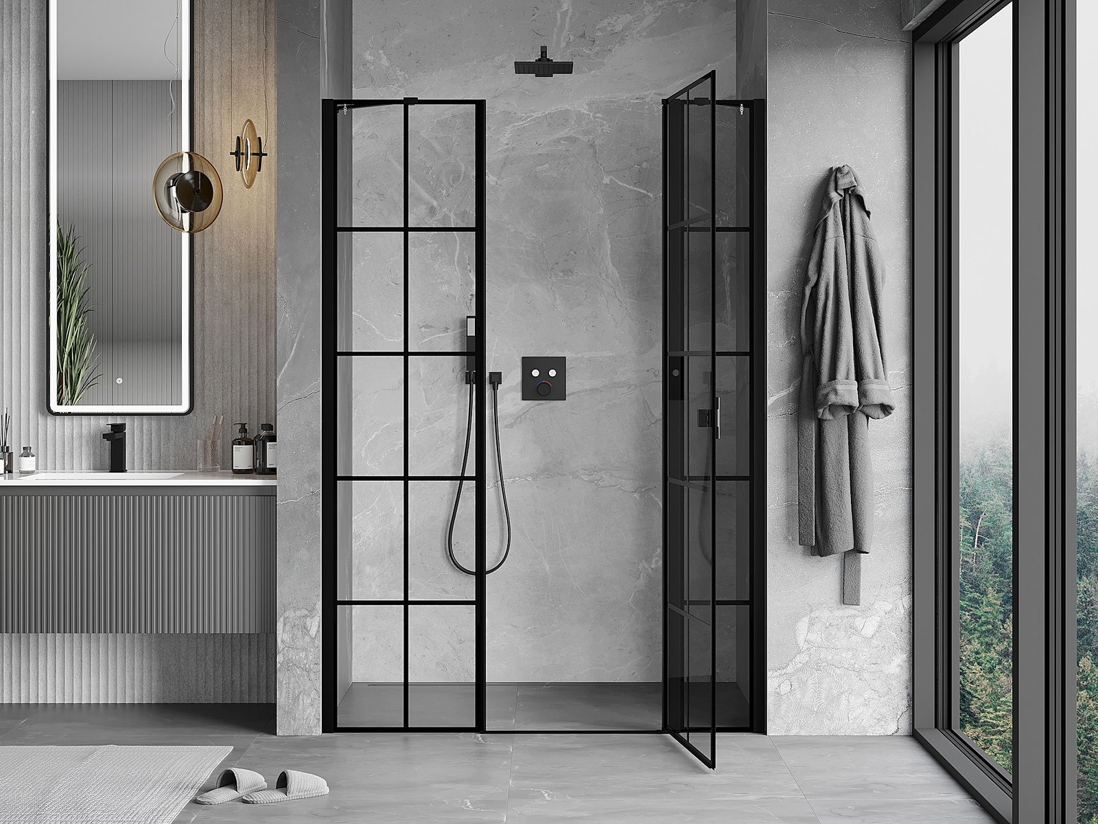 Les portes battantes permettent une liberté maximale lors de l'utilisation. Elles possèdent des charnières solides fabriquées à partir d'un matériau durable, qui ne posent pas de difficultés pour le nettoyage et permettent un accès facile à l'intérieur de la cabine.