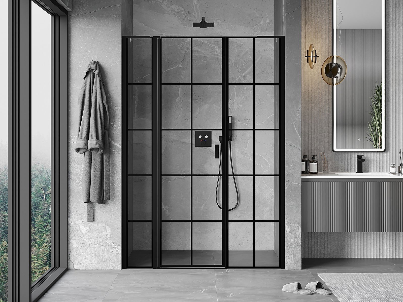 La poignée pratique et confortable est fabriquée en métal durable et résistant. Sa forme à la mode, combinée à une finition assortie à la couleur des profilés, donne à l'ensemble un aspect moderne et stylé, soulignant l'esthétique de chaque salle de bain.