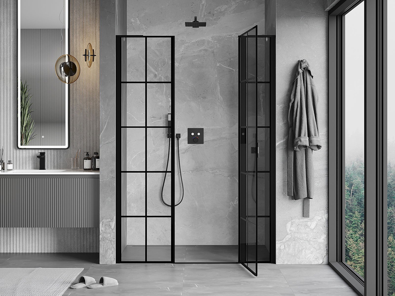 Mexen Mist L porte de douche pivotante droite 160 cm, grille noire, noir - 8A4L-160-001-70-77-P