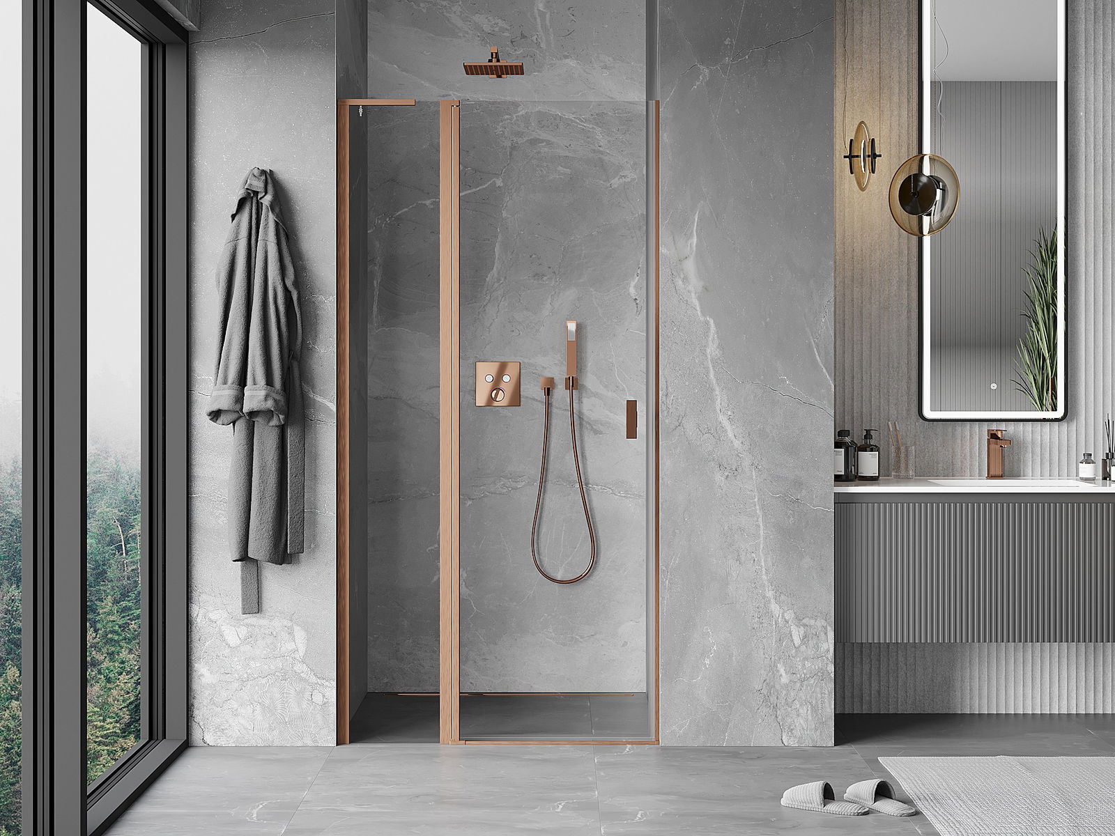 Mexen Mist L porte de douche pivotante 95 cm, transparent, cuivre brossé - 8A4L-095-000-65-00