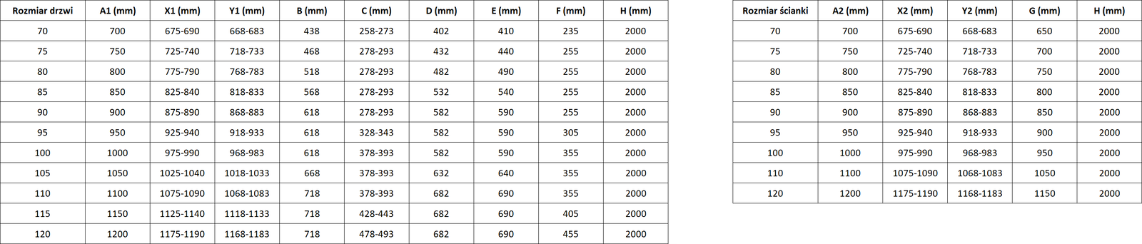 Taille : 80x95 cm (porte gauche 80 cm, paroi 95 cm)