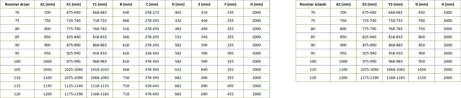 Taille : 75x95 cm (porte droite 75 cm, paroi 95 cm)
