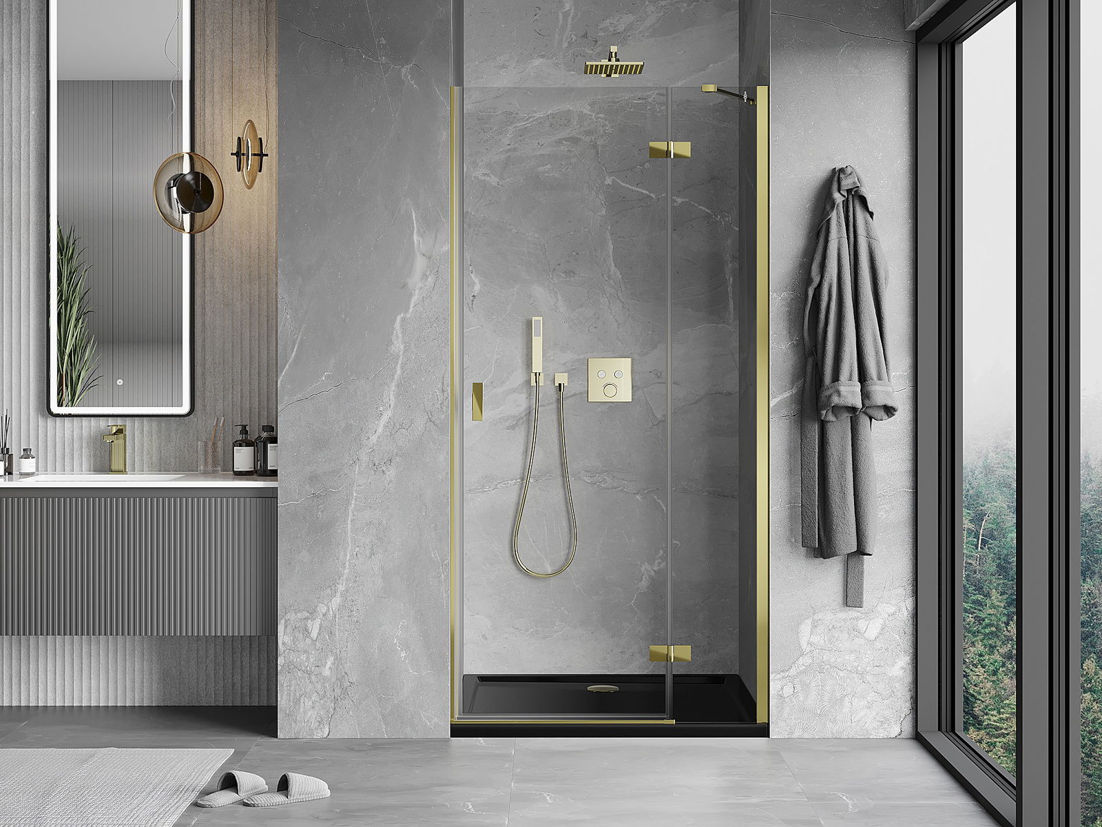 La poignée pratique et confortable est fabriquée en métal durable et résistant. Sa forme à la mode, combinée à une finition assortie à la couleur des profilés, donne à l'ensemble un aspect moderne et stylé, soulignant l'esthétique de chaque salle de bain.