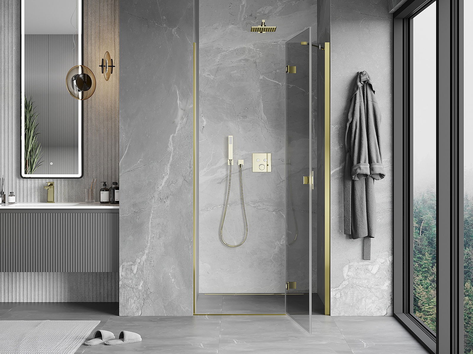 Mexen Mist-H porte de douche pivotante droite 100 cm, transparent, doré - 8A5-100-000-50-00-P
