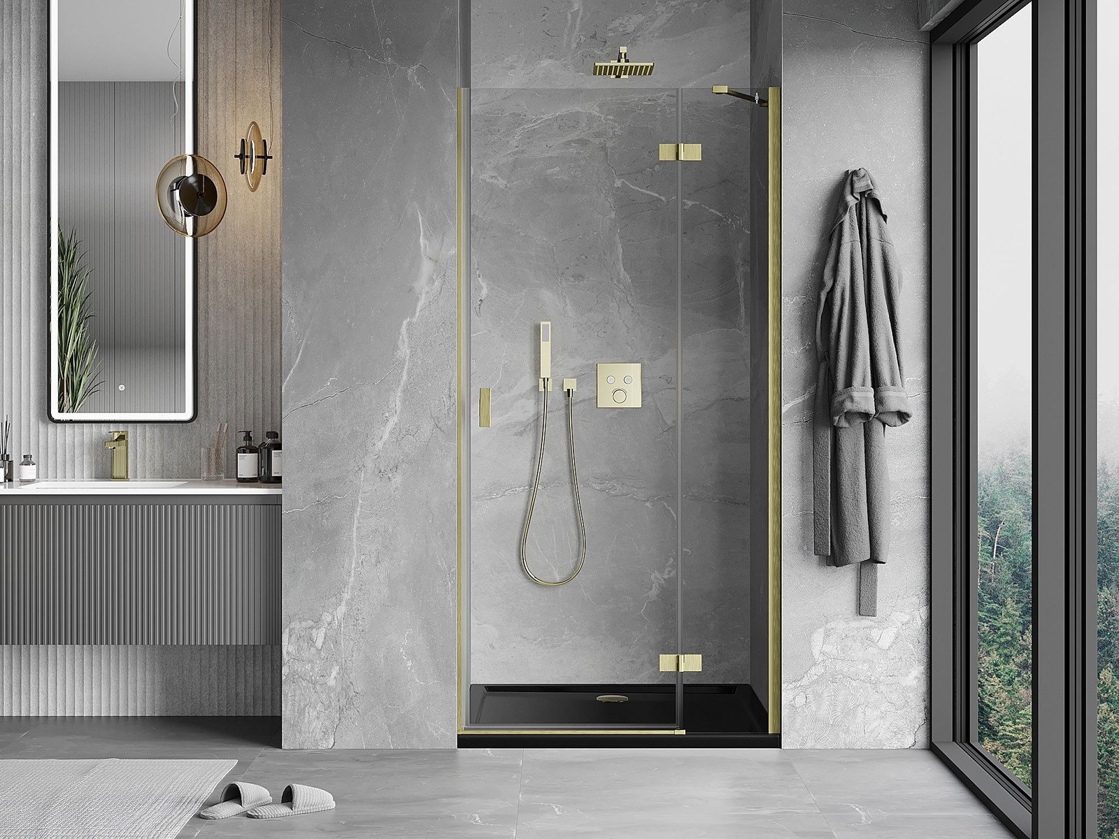 La poignée pratique et confortable est fabriquée en métal durable et résistant. Sa forme à la mode, combinée à une finition assortie à la couleur des profilés, donne à l'ensemble un aspect moderne et stylé, soulignant l'esthétique de chaque salle de bain.