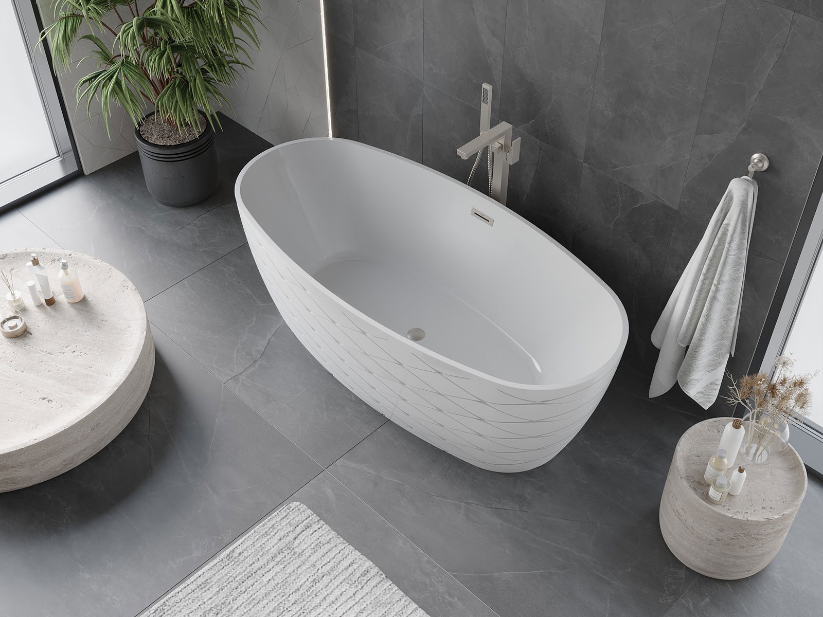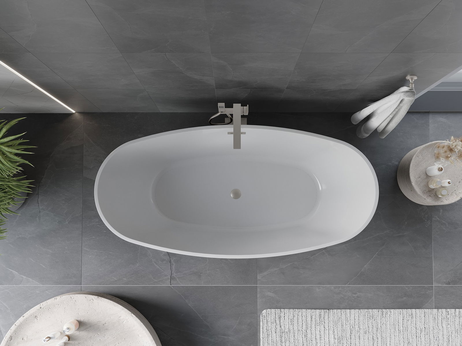C'est un matériau moderne combinant un aspect élégant avec une haute durabilité. Il est résistant aux dommages mécaniques, facile à nettoyer et agréable au toucher. La forme transparente et le bord fin de la baignoire lui confèrent légèreté et caractère unique, créant un accent spectaculaire dans l'aménagement de la salle de bain.