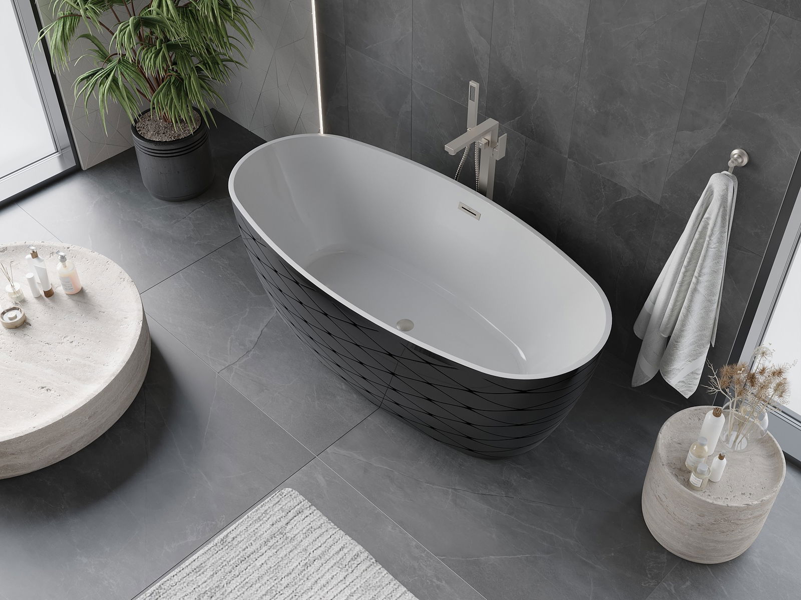 C'est un matériau moderne combinant un aspect élégant avec une haute durabilité. Il est résistant aux dommages mécaniques, facile à nettoyer et agréable au toucher. La forme transparente et le bord fin de la baignoire lui confèrent légèreté et caractère unique, créant un accent spectaculaire dans l'aménagement de la salle de bain.