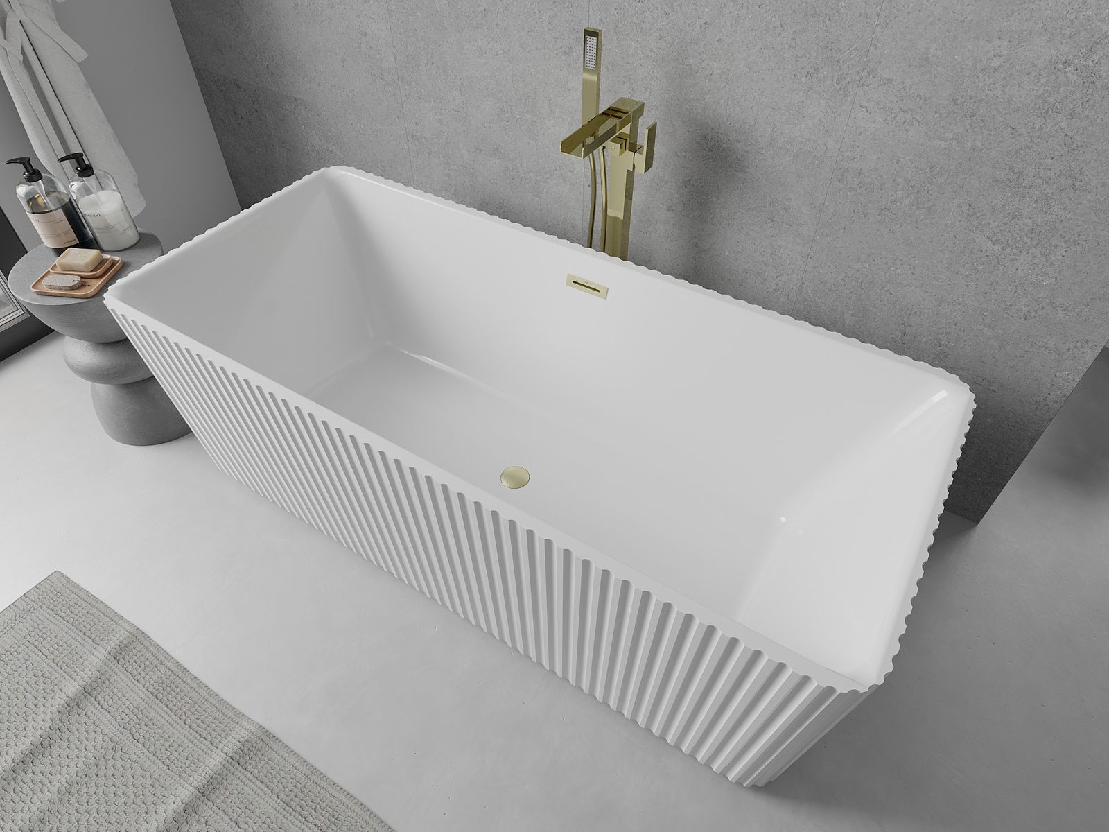 Mexen Nila baignoire autoportante rainurée 170 x 75 cm, blanche, trop-plein doré brossé - 52841708000-55