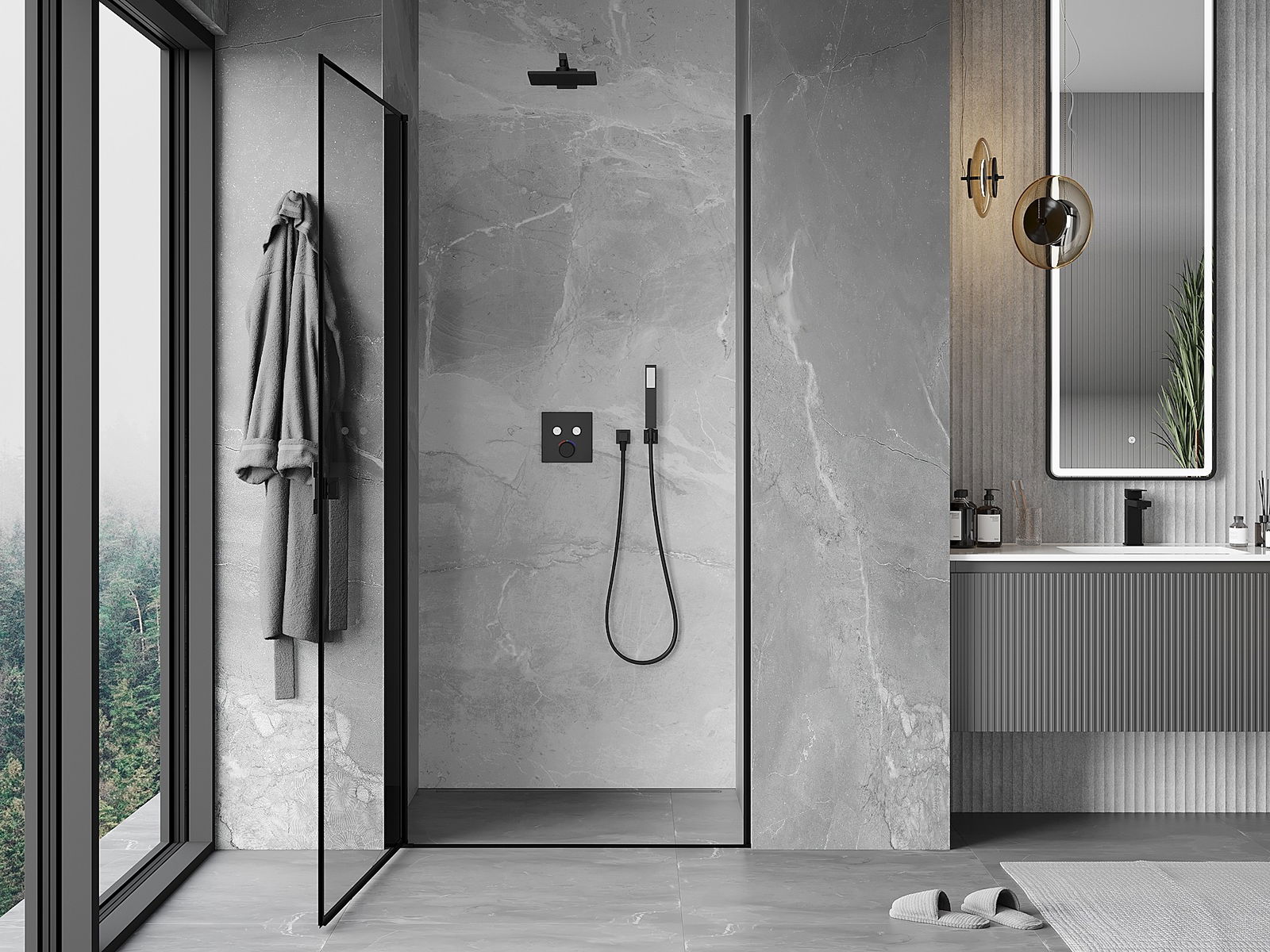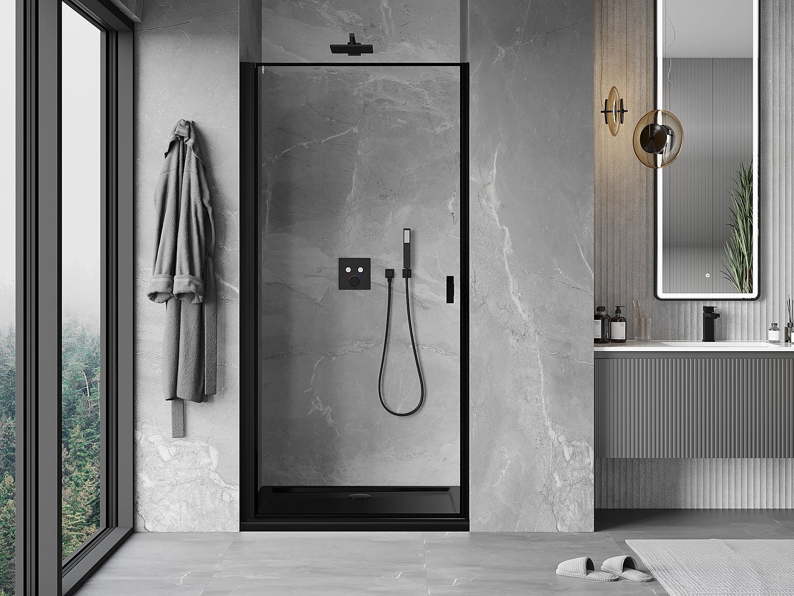 Mexen Mist-B porte de douche pivotante gauche 80 cm, cadre noir, noir - 8A2-080-000-70-70-L
