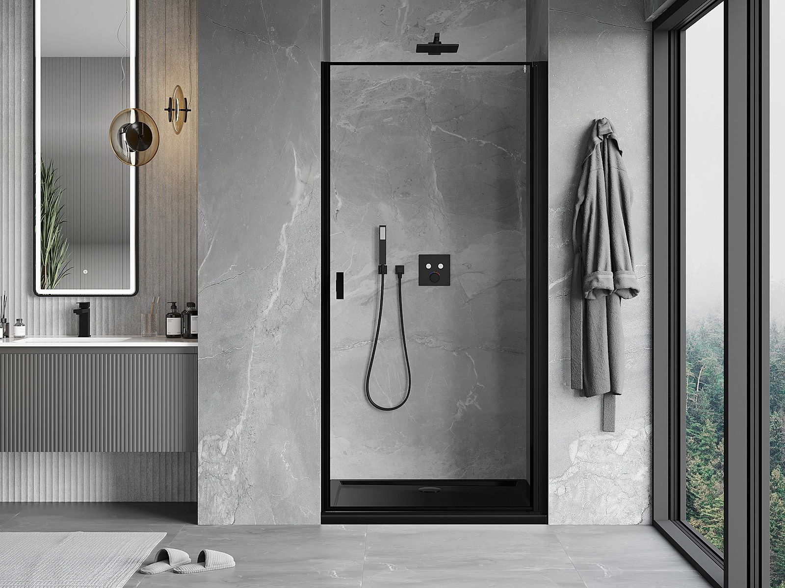 Mexen Mist-B porte de douche pivotante droite 70 cm, cadre noir, noir - 8A2-070-000-70-70-P
