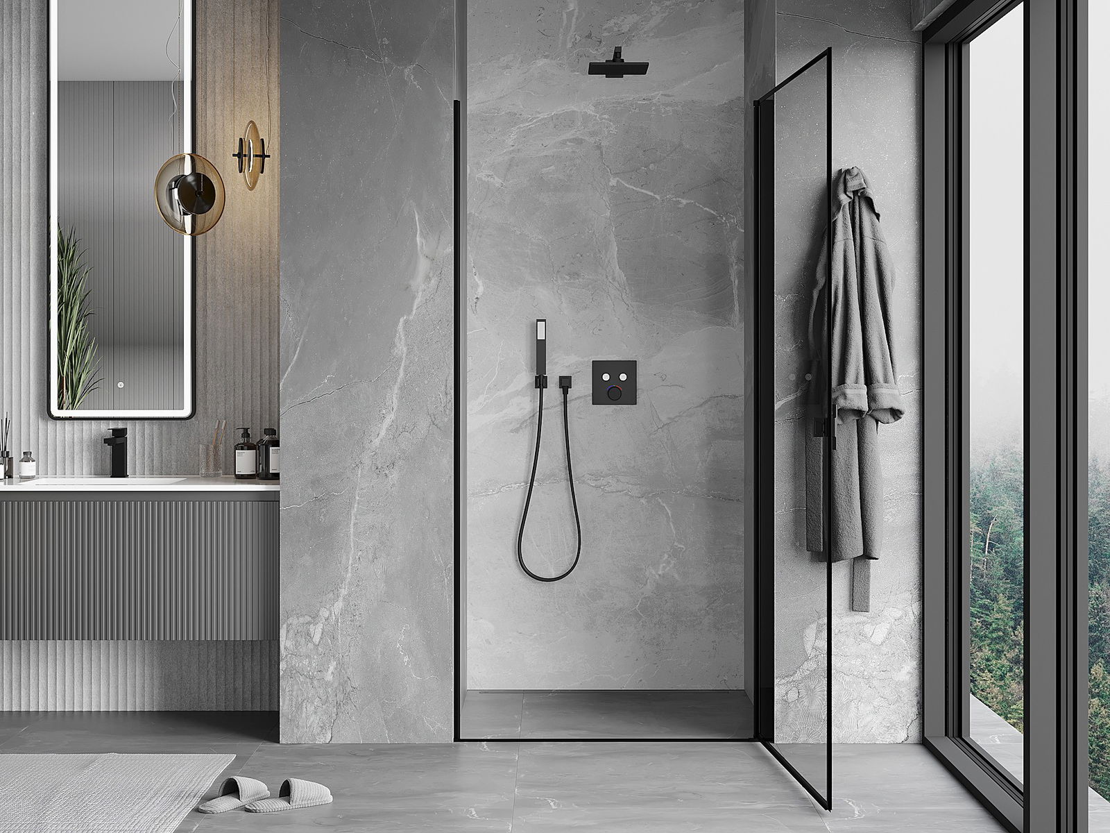 La poignée pratique et confortable est fabriquée en métal durable et résistant. Sa forme à la mode, combinée à une finition assortie à la couleur des profilés, donne à l'ensemble un aspect moderne et stylé, soulignant l'esthétique de chaque salle de bain.