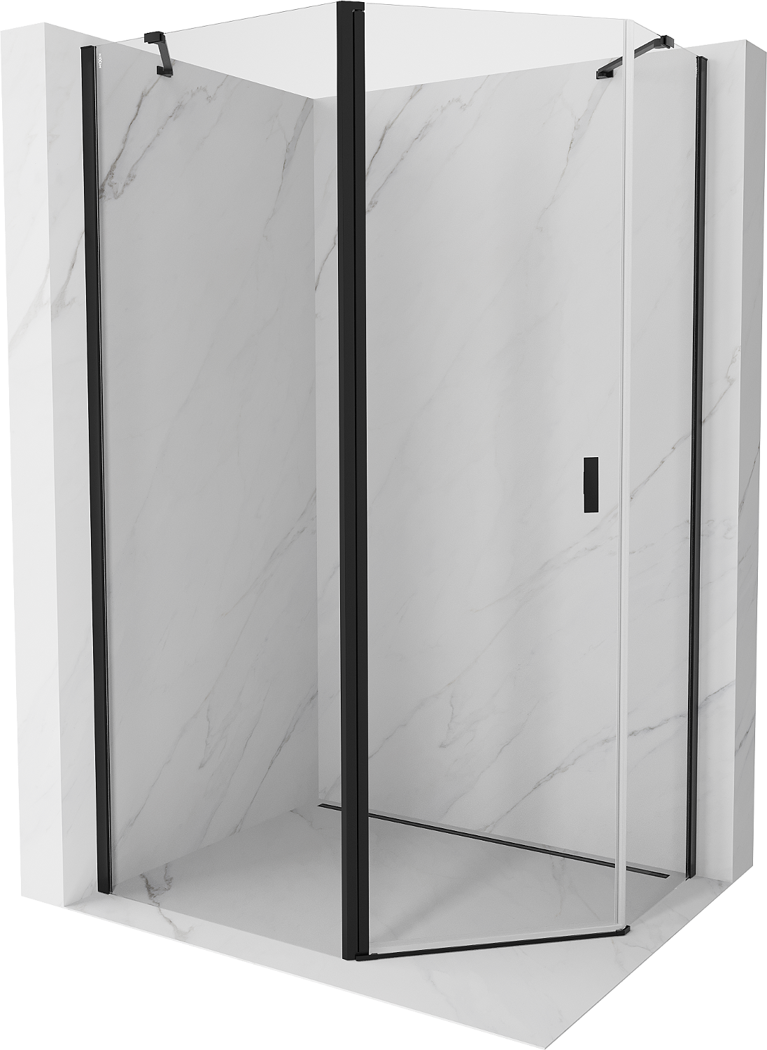 Mexen Mist cabine de douche pentagonale asymétrique pivotante 90 x 80 cm, transparente, noire - 8A8-090-080-70-00