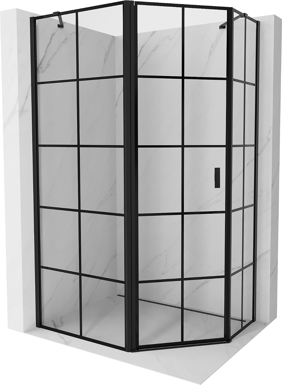 Mexen Mist cabine de douche pentagonale asymétrique pivotante gauche 100 x 80 cm, grille noire, noire - 8A8-100-080-70-77-L