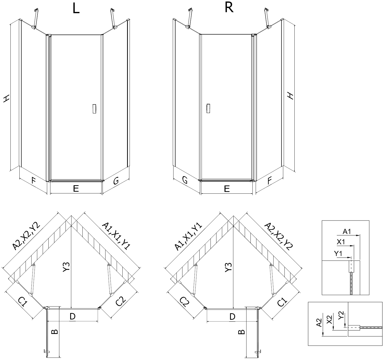 Taille : 90x100 cm (porte gauche 90 cm, paroi 100 cm)