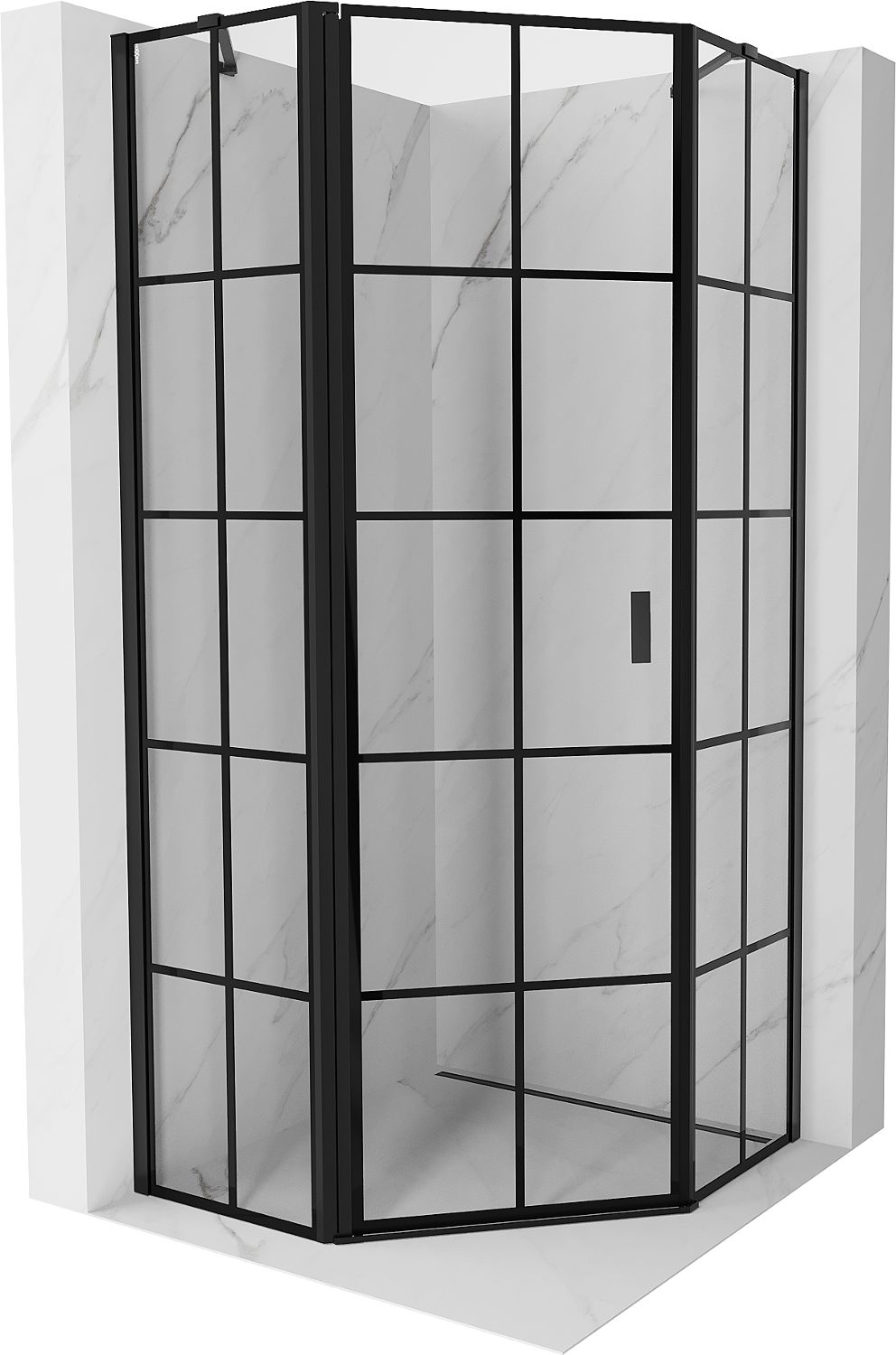 Mexen Mist cabine de douche pentagonale pivotante gauche 100 x 100 cm, grille noire, noir - 8A8-100-100-70-77-L