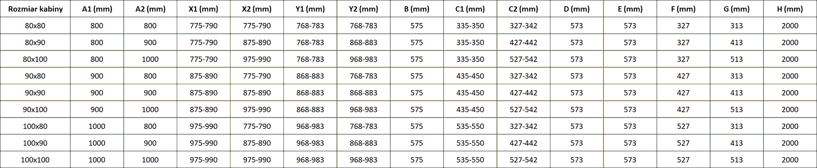 Taille: 80x100 cm (porte droite 80 cm, paroi 100 cm)