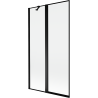 Un paravent composé de deux ailes repliables. Cette solution permet de gagner de la place dans la salle de bain et d'utiliser l'espace restant lorsque l'on ne se baigne pas.
