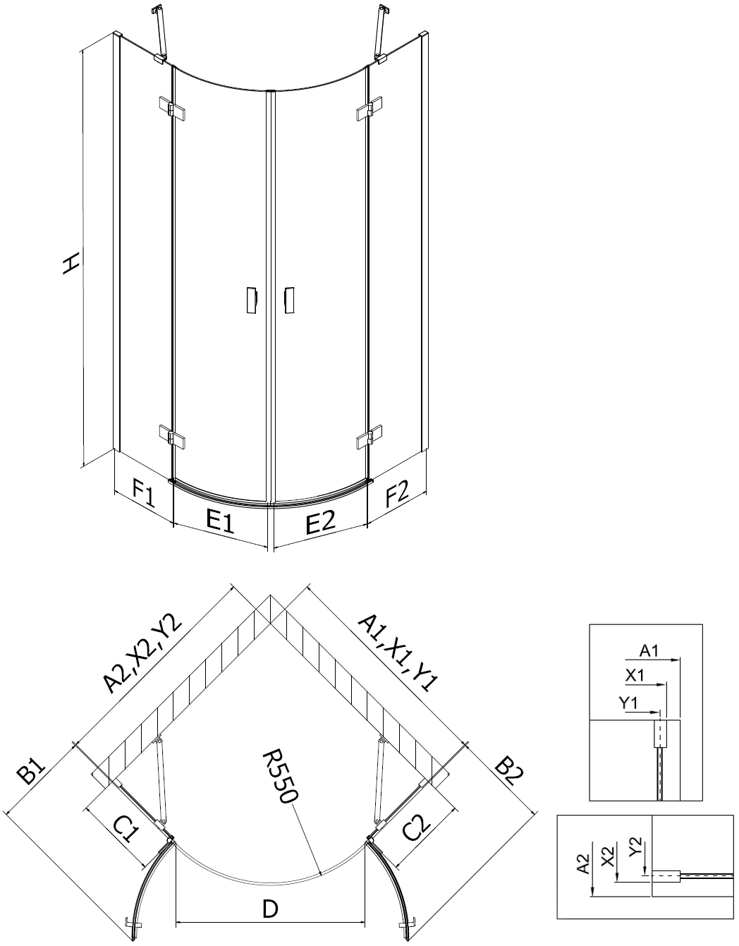 Les portes battantes permettent une liberté maximale lors de l'utilisation. Elles possèdent des charnières solides fabriquées à partir d'un matériau durable, qui ne posent pas de difficultés pour le nettoyage et permettent un accès facile à l'intérieur de la cabine.